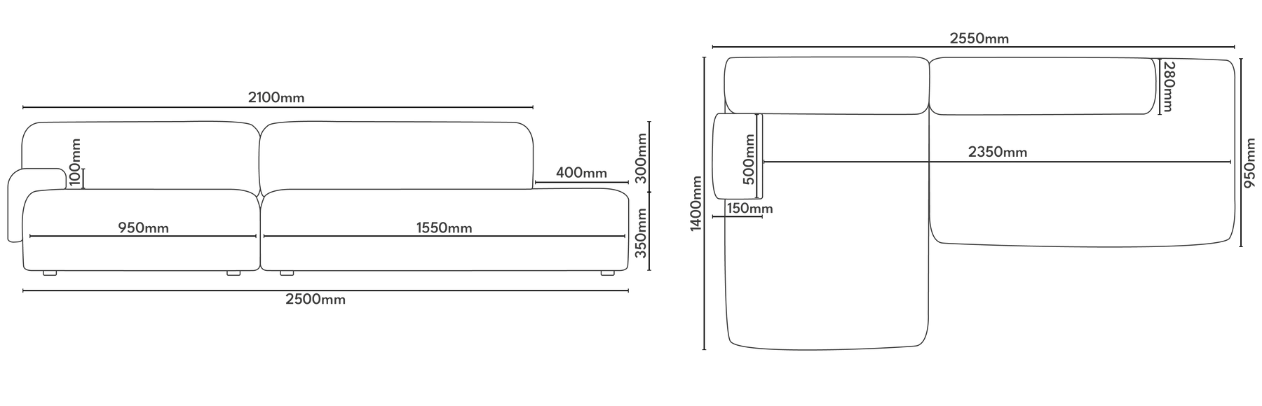 Narożnik modułowy otwarty prawostronny UMI kasztanowy czerwony