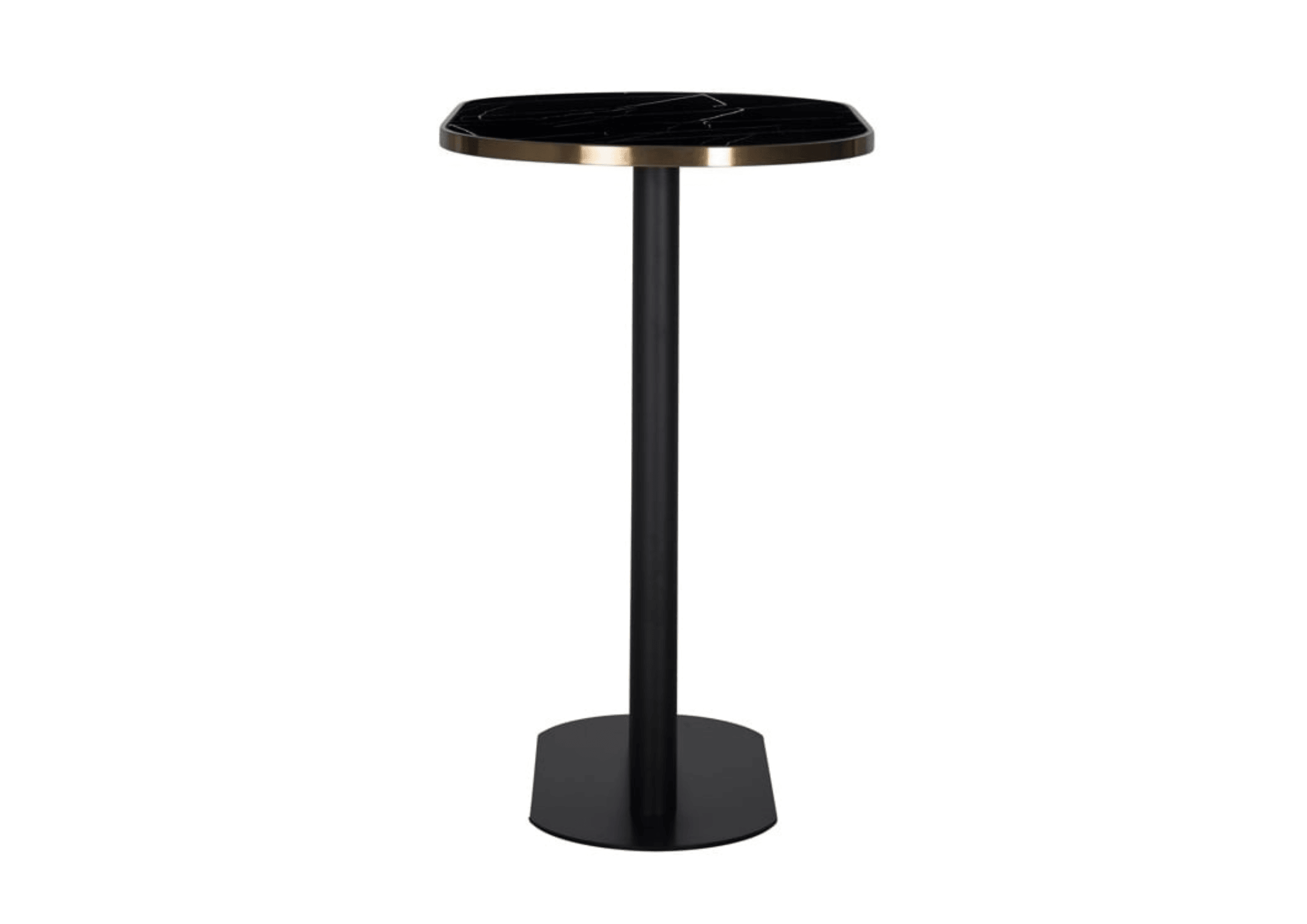 The top frame, decorated in gold, is a unique detail that adds even greater charm to the table. The contrast between black marble and golden accents is spectacular and gives the Zenza bar table a unique look.