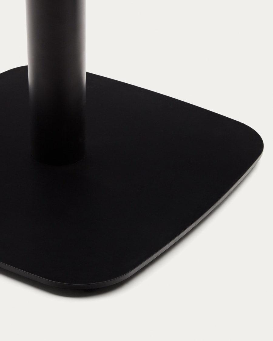 Table Dina with a black base and a black round top is an elegant piece of furniture that adds a modern character to any room. Its round countertop and metal base, both in black, create a harmonious composition that catches the eye with its minimalist design.
