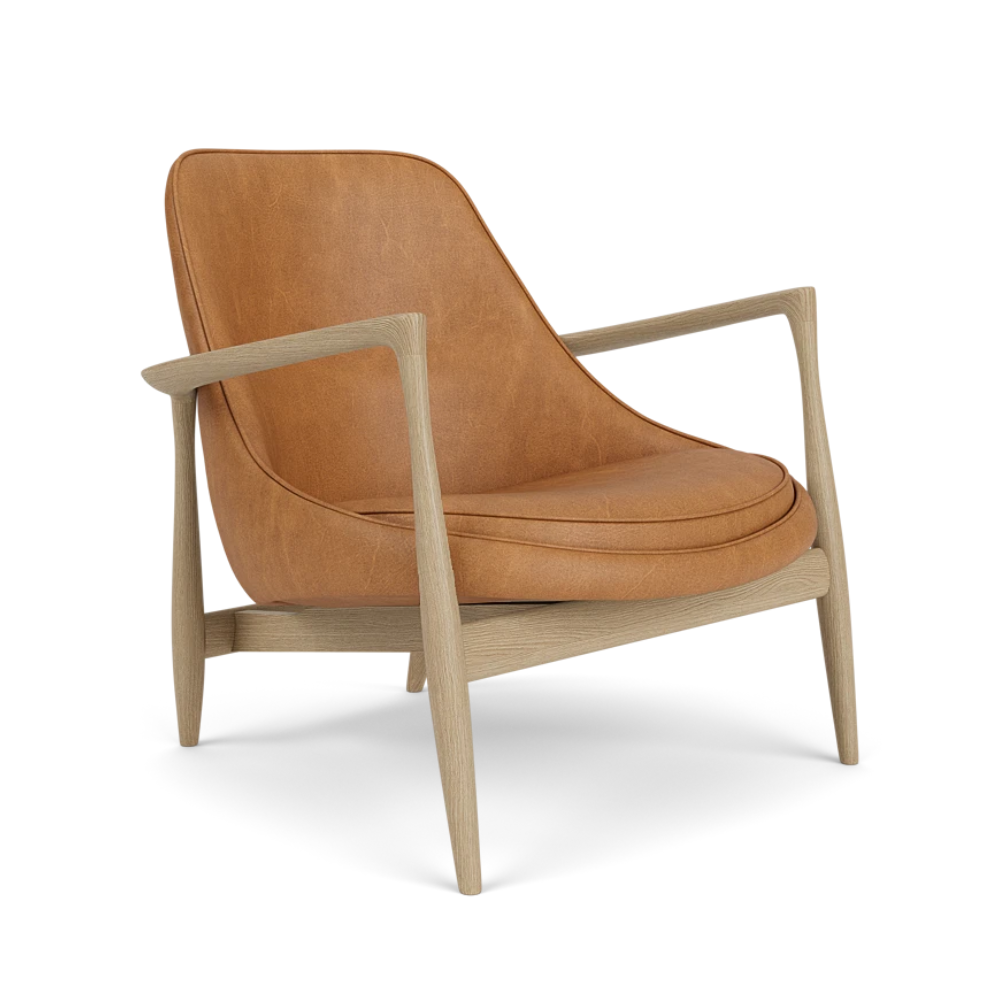 ELIZABETH armchair in cognac leather with oak base [Julia]