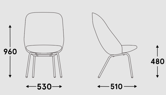 Armchair with high back parallel four -legged base
