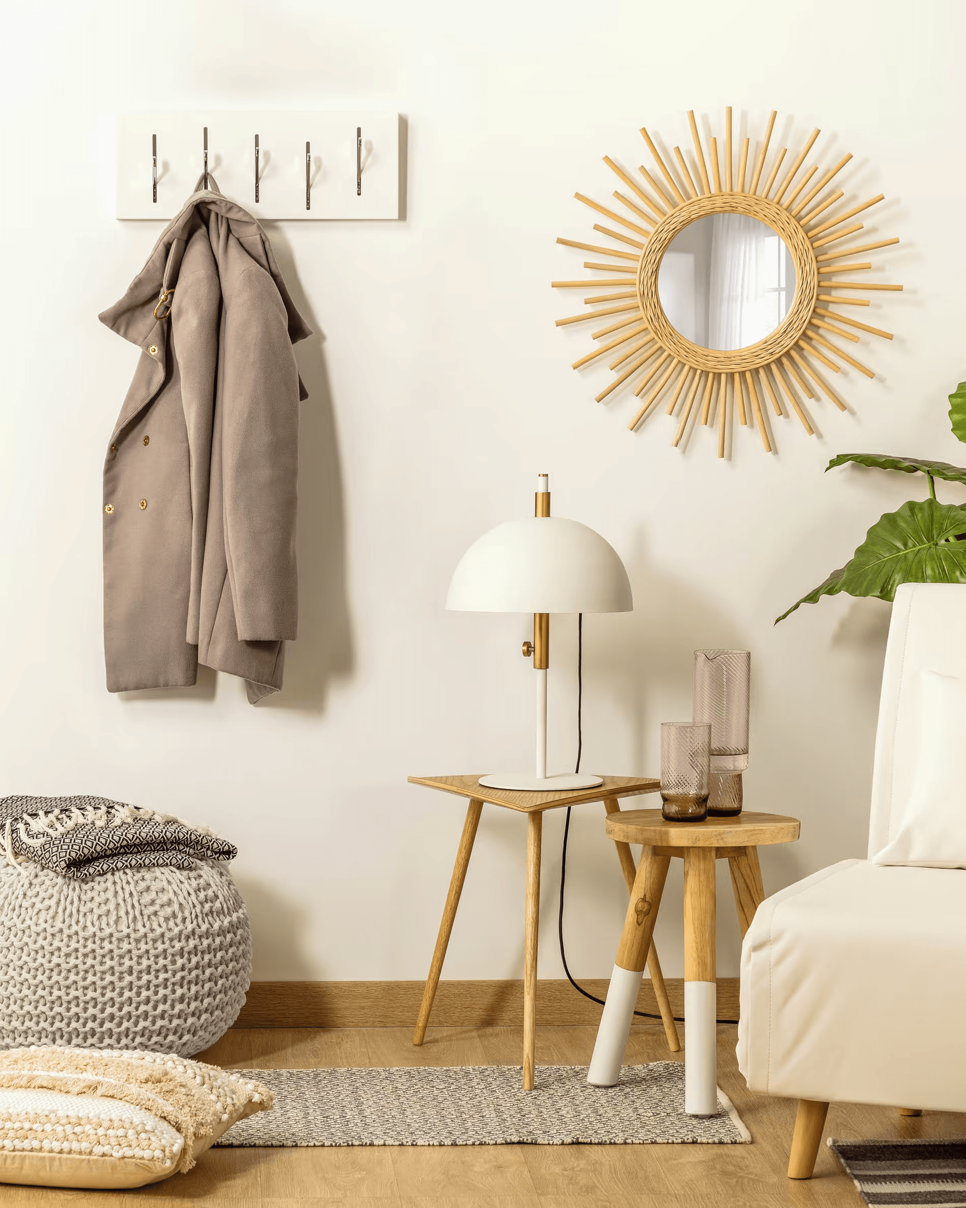 Hanger Andrey made of zinc painted in white has 5 folding steel hangers with a chrome finish that you can fold if you do not use them. In addition, because it is mounted on the wall, it takes up little space. Ideal for storing accessories to always have them at hand.