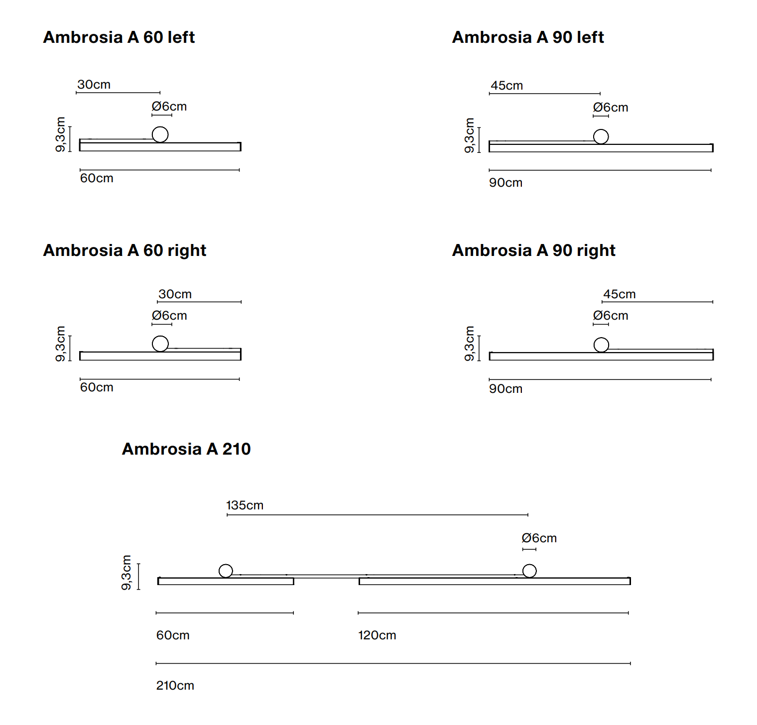 Available in three lengths - 60, 90 and 210 cm - can be mounted horizontally or vertically. 24V LED SMD is available at three warm color temperatures, 2200 K, 2700 K and 3000 K, which allows you to adjust the intensity.