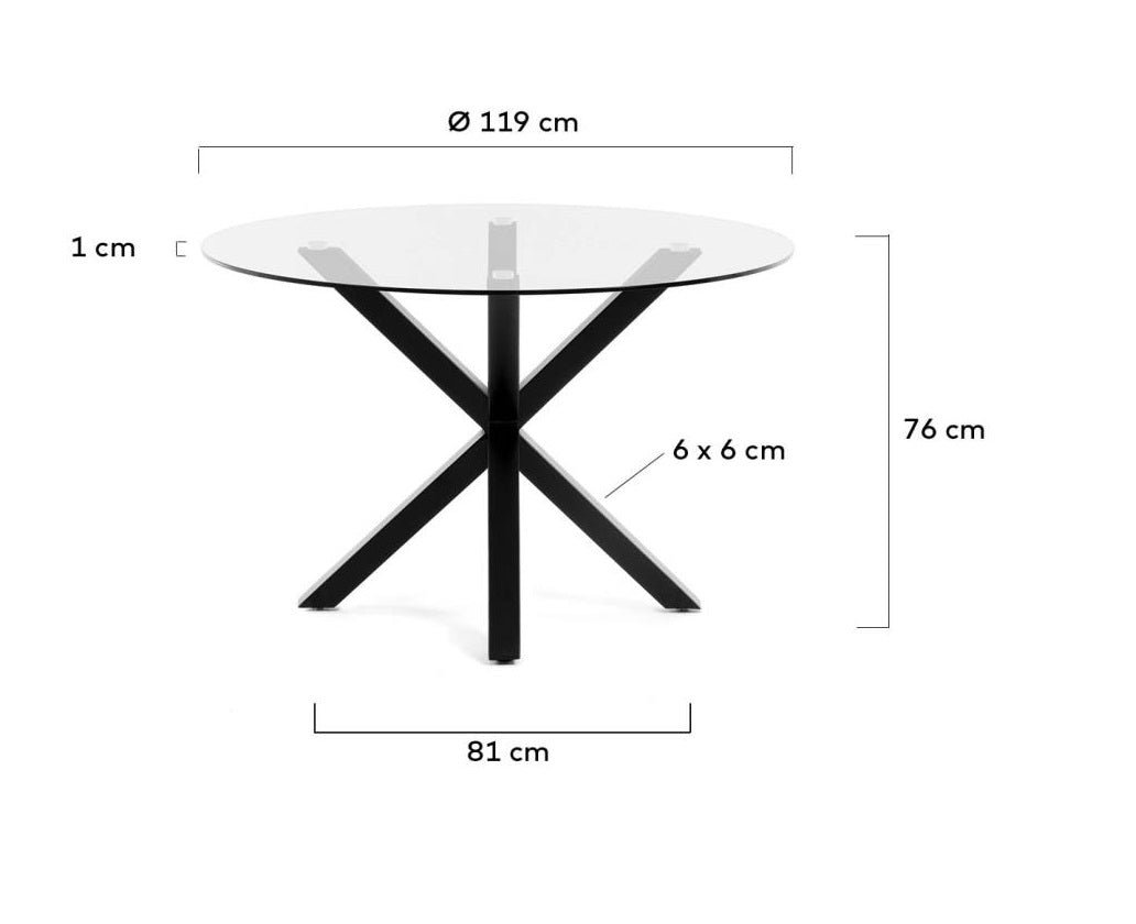 Round table Argo with a glass top and a black base is a unique combination of elegance, modernity and functionality. Its unique base with crossing steel legs ensures stability, and at the same time gives the whole sophisticated character. Thanks to the matte black finish, the legs become a subtle accent that blends in perfectly with the rest of the interior.