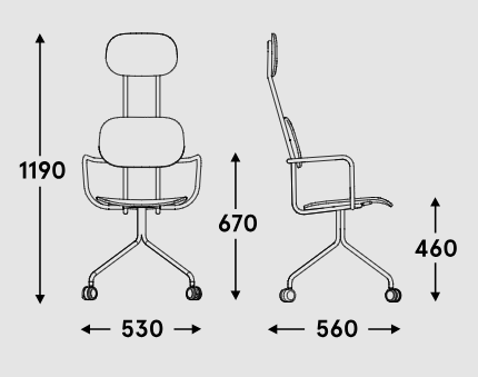 Office chair with headrest New School, designed by Studio Form US with Love, attracts attention with a modern form of double support. This version provides support for the whole back, and the headrest additionally increases the comfort of use. Thanks to the wheels and armrests, the New School chair is not only comfortable, but also functional, allowing for freedom of movement and a comfortable position, even during a longer sitting.