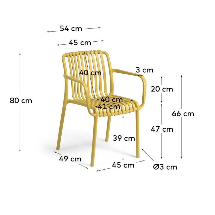 Made of recycling plastic, yellow chair Isabellini is an excellent choice for those who care about the environment. Its durable design makes it resistant to UV radiation, which makes it an ideal furniture for outside use, regardless of weather conditions.