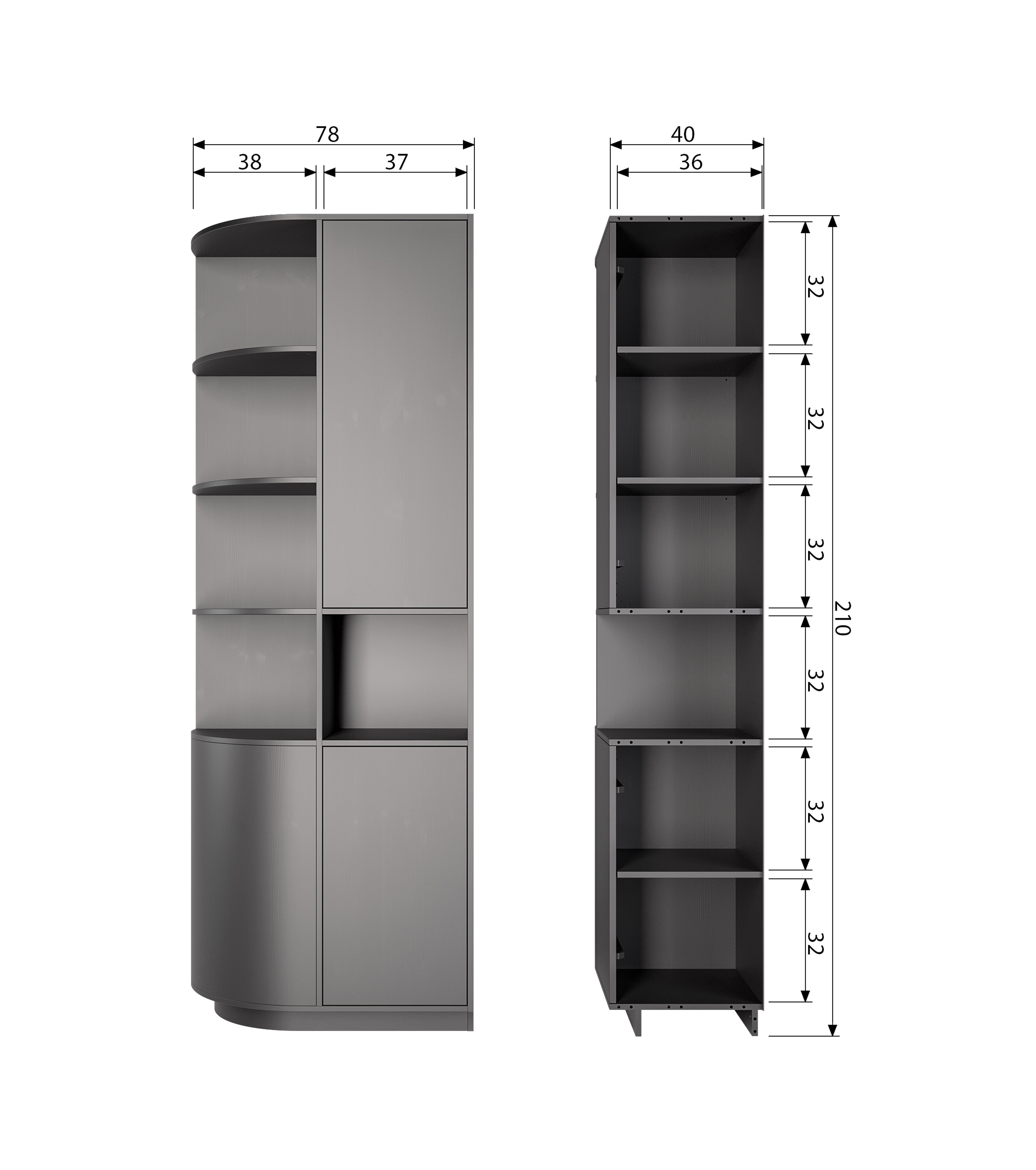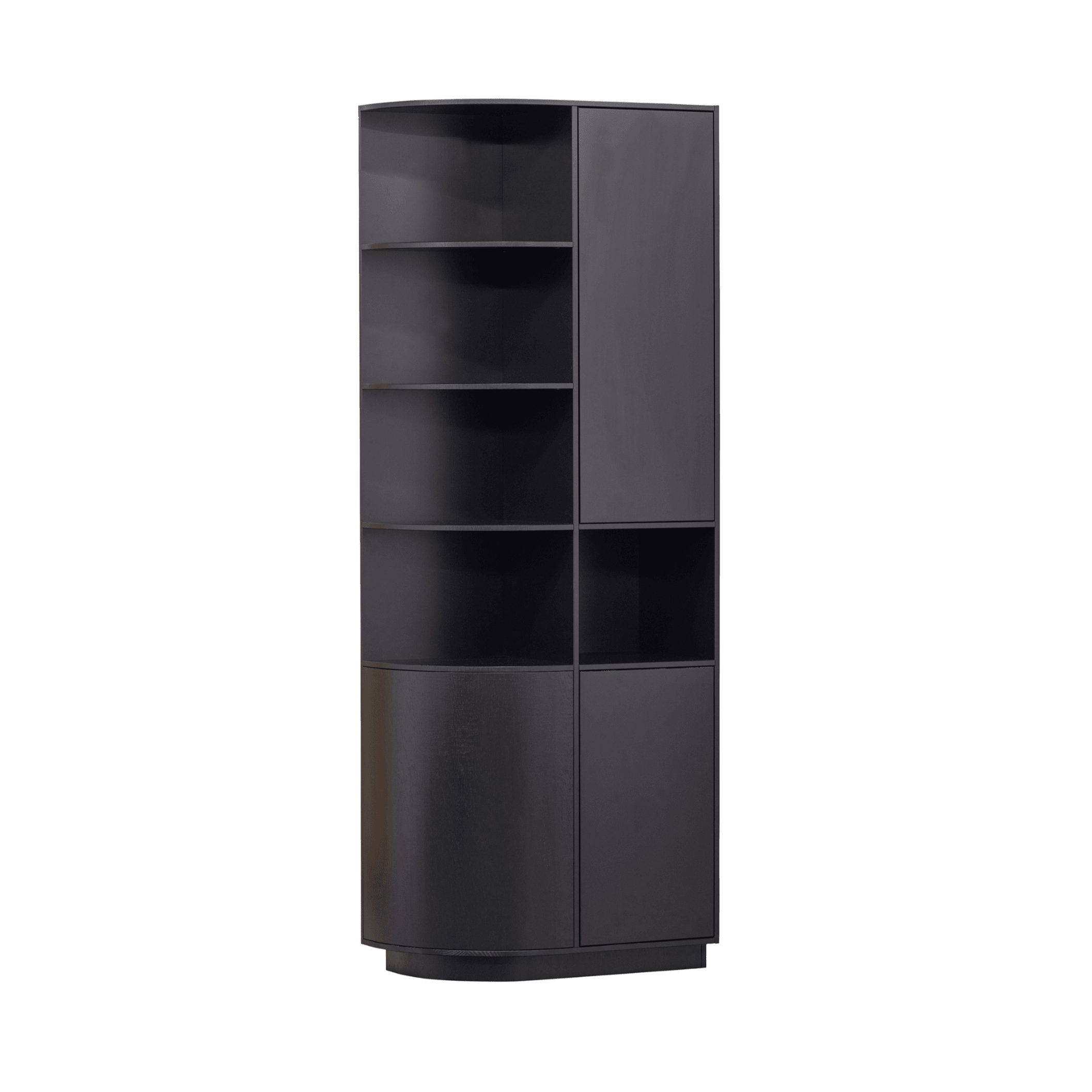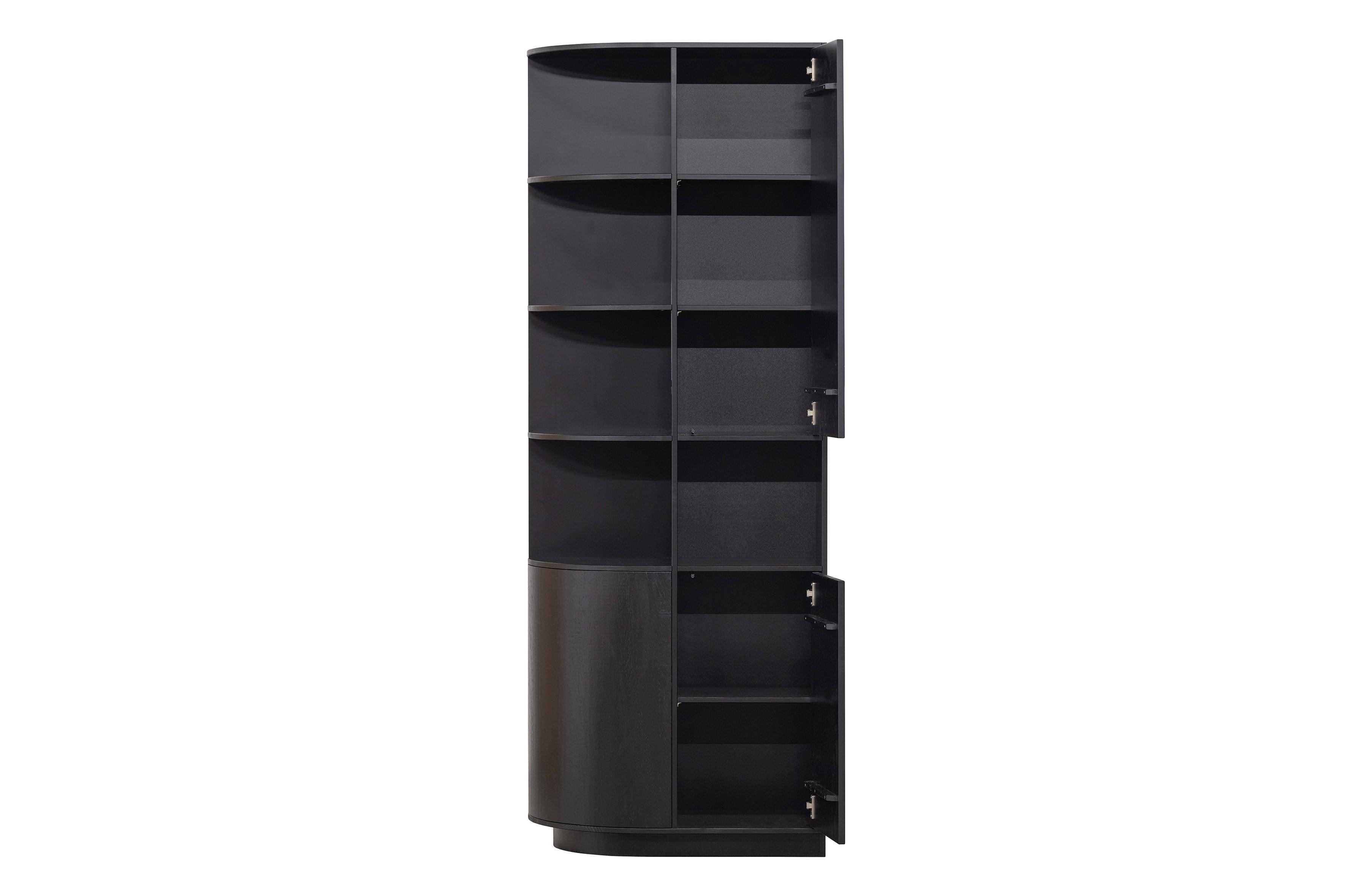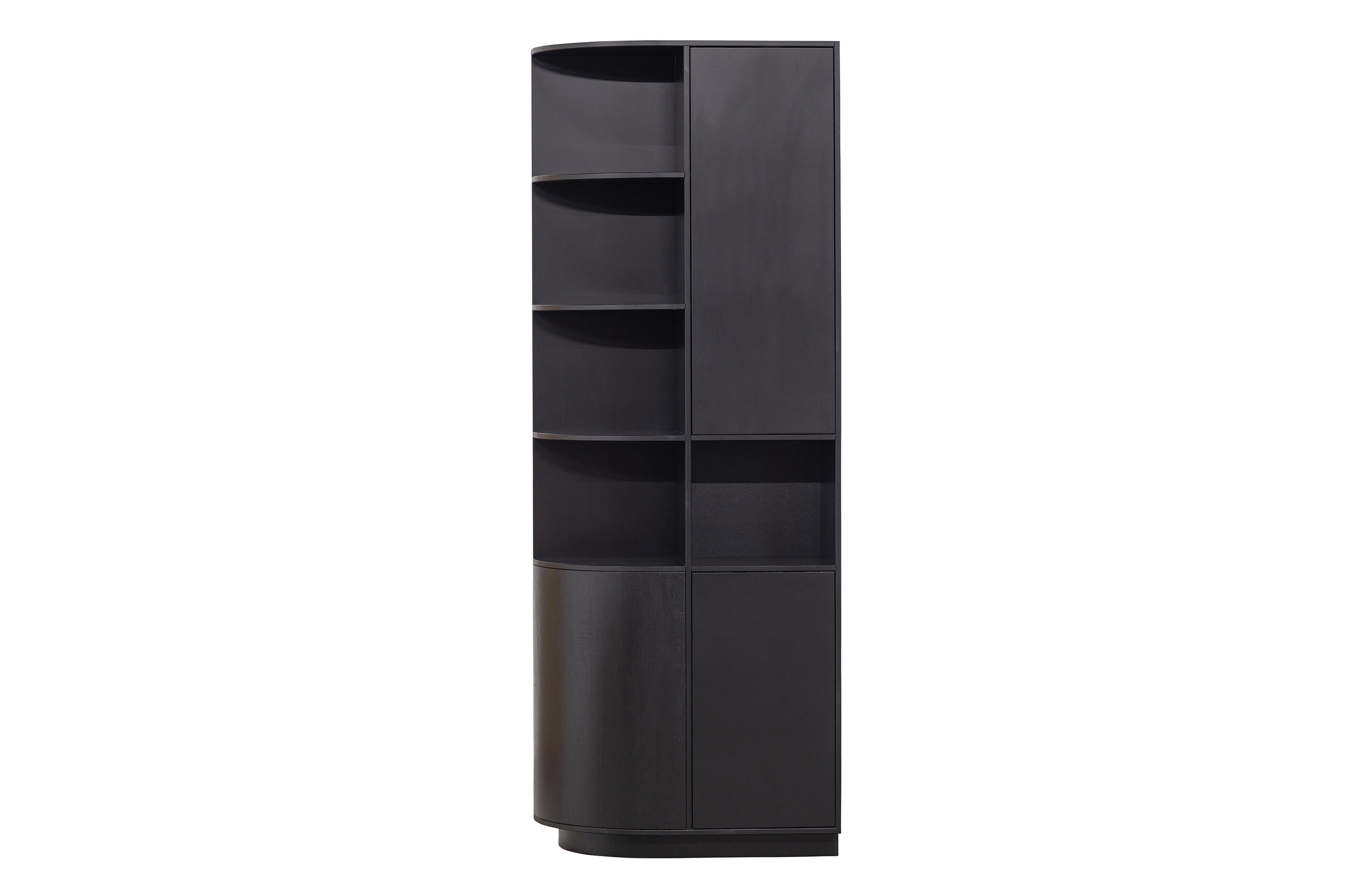 Rack The fiana was made of certified pine wood and finished in deep black. This unique piece of furniture combines open and closed compartments, creating a stylish whole, while offering a lot of space for storing the most beautiful accessories.