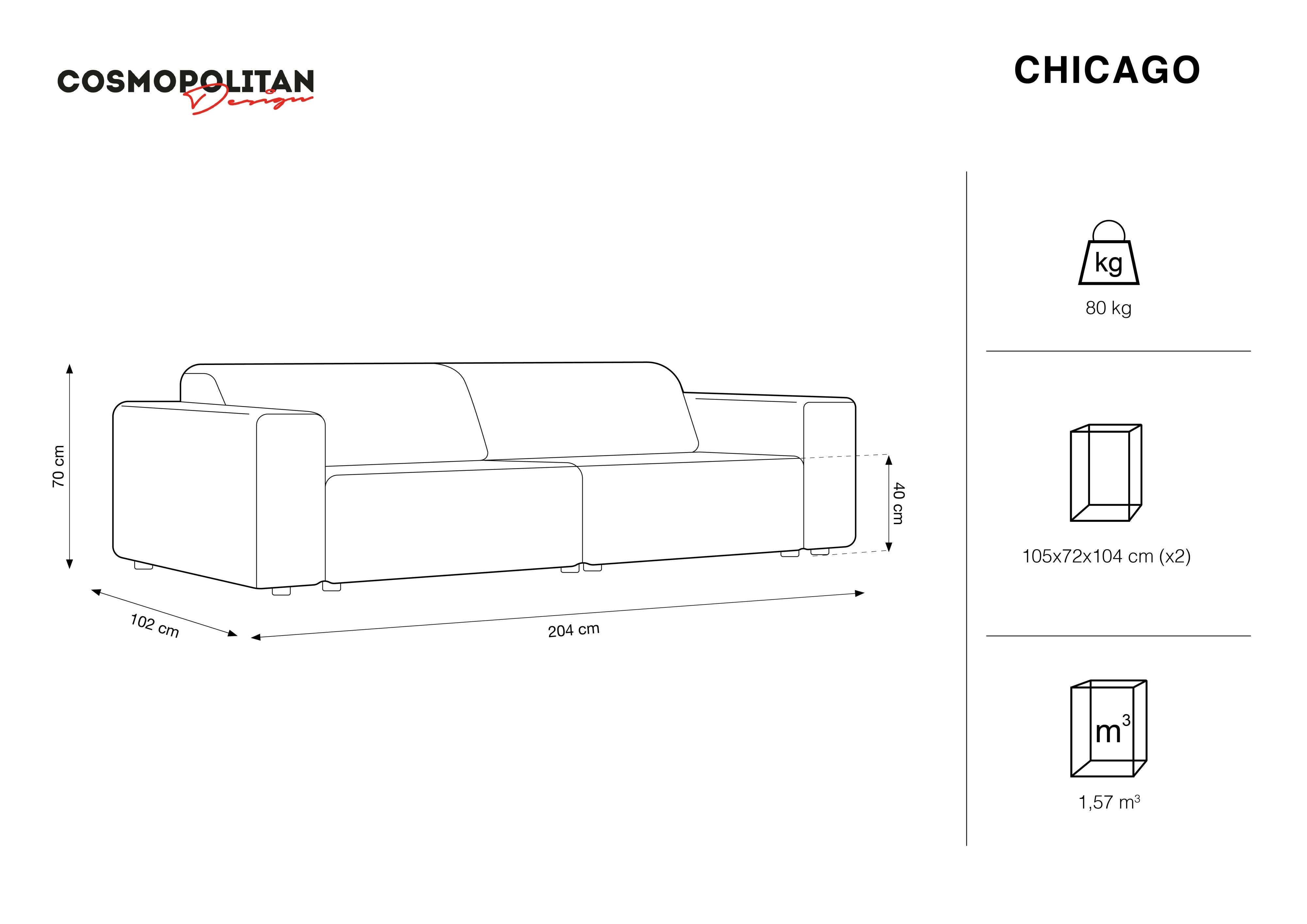 Sofa 3-osobowa CHICAGO jasnoszary szenil Cosmopolitan Design    Eye on Design