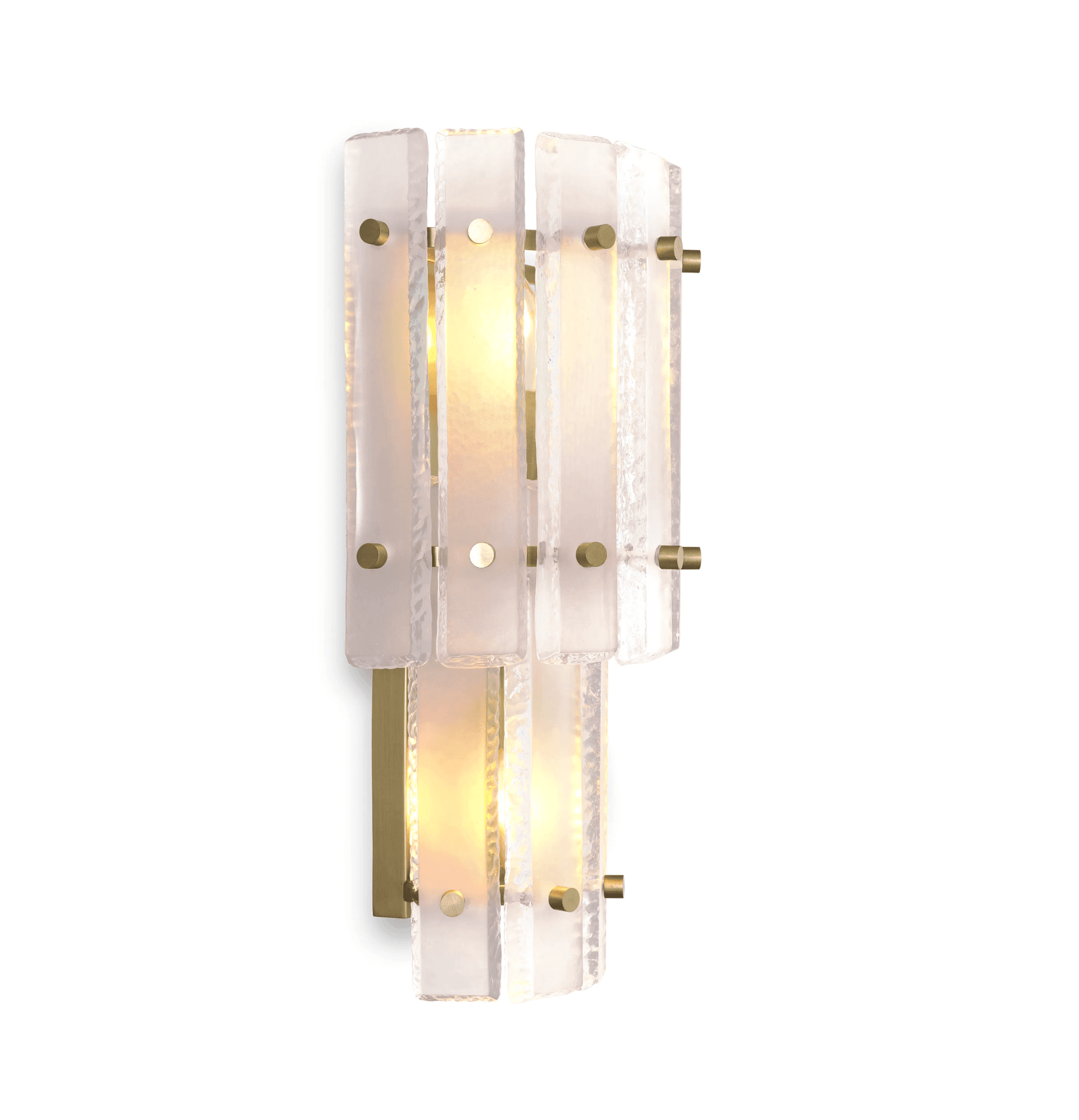 Transparent glass tiles, whose fronts have been matted, serve as the main source of lighting and create dramatic patterns on the surfaces surrounding the room. The rough sides of the plates add textures, which makes this lamp even more unique.