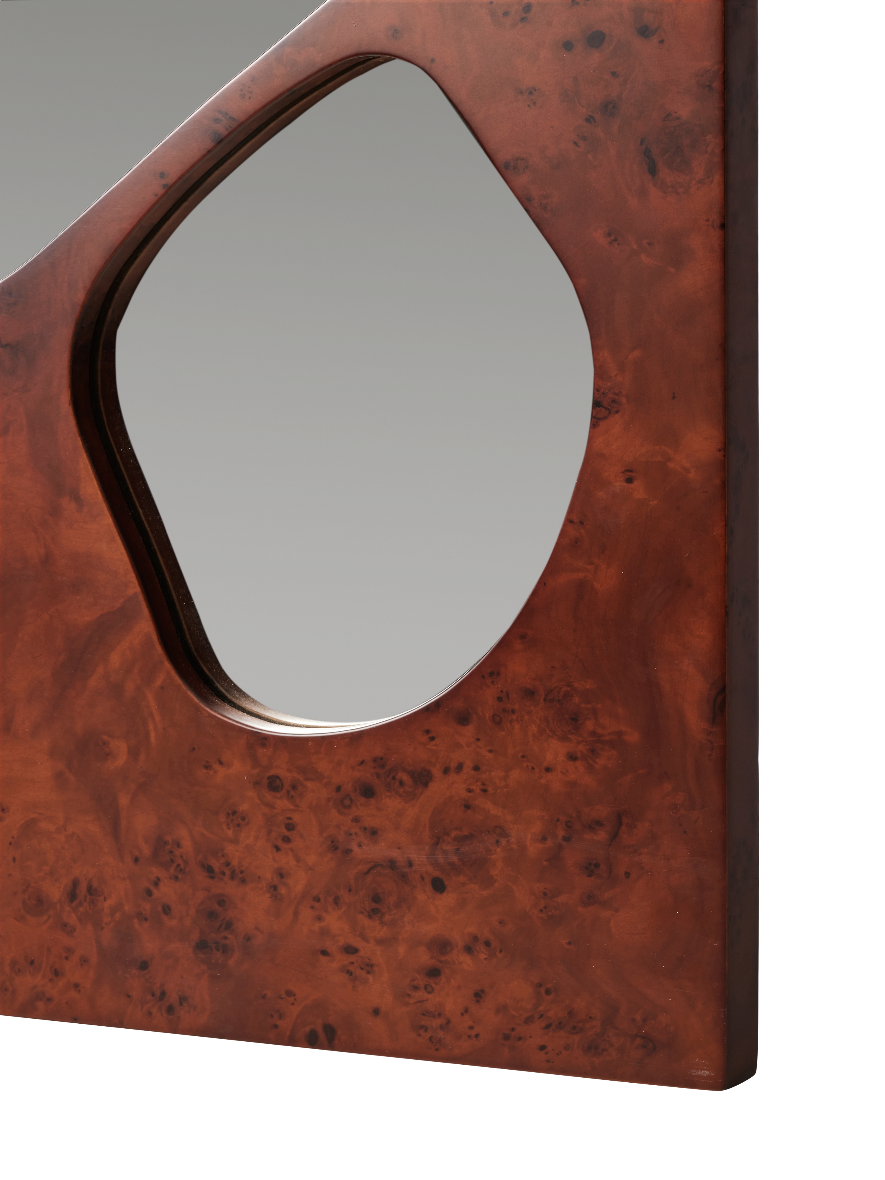 Lustro Folia to wyjątkowy element dekoracyjny inspirowany naturalnymi formami liści, który wprowadza do wnętrza organiczną elegancję i subtelny ruch. Wykonane z forniru z topoli czeczotowej z certyfikatem FSC™ oraz płyty MDF, zachwyca unikalnym usłojeniem drewna i asymetrycznymi wstawkami lustrzanymi. Ich nieregularny, liściasty kształt nadaje całości artystycznego charakteru i przyjemnej lekkości, tworząc efektowną ozdobę zarówno nowoczesnych, jak i klasycznych przestrzeni.