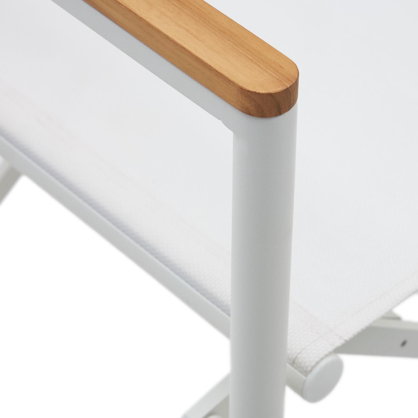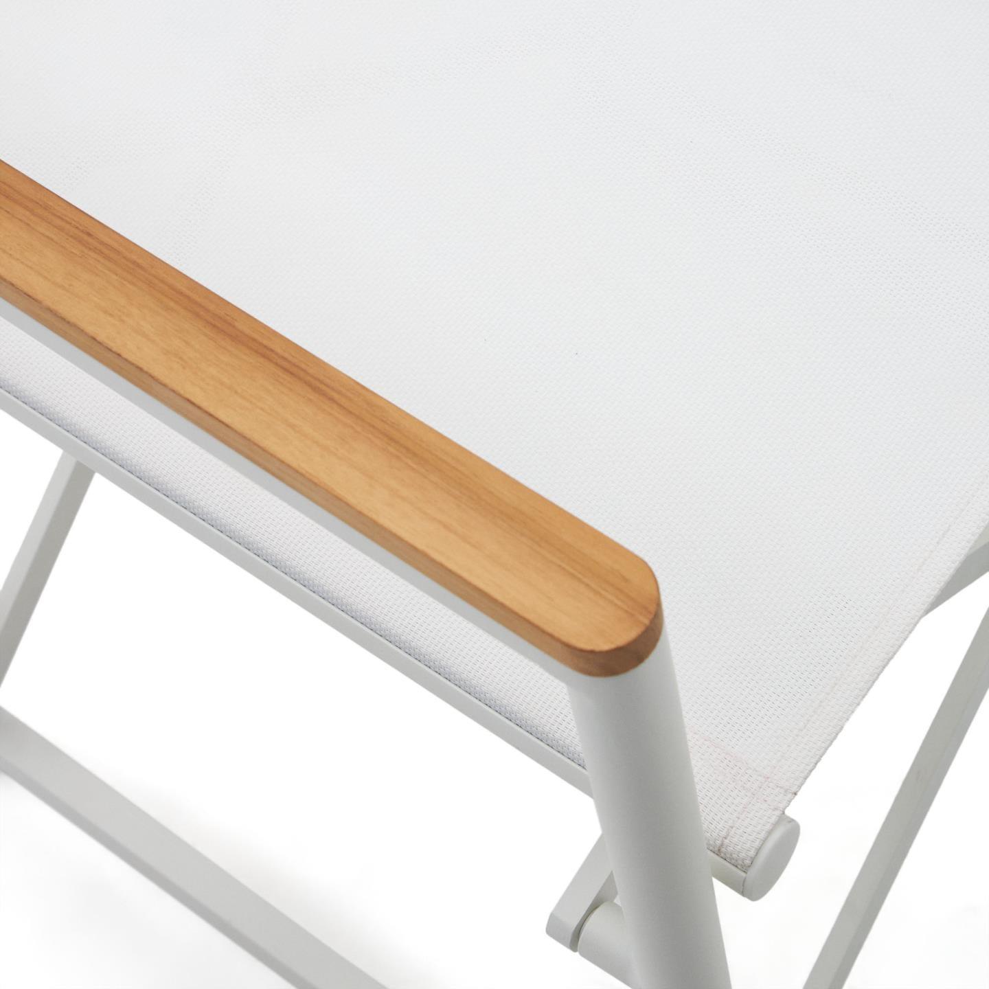 Absolut Film Sessel. In LLADO bestand dieses klassische Muster aus Aluminium und Loungern aus soliden Teaks. Es ist resistent gegen UV -Strahlung und gefaltet, um Platz während des Speichers zu sparen.