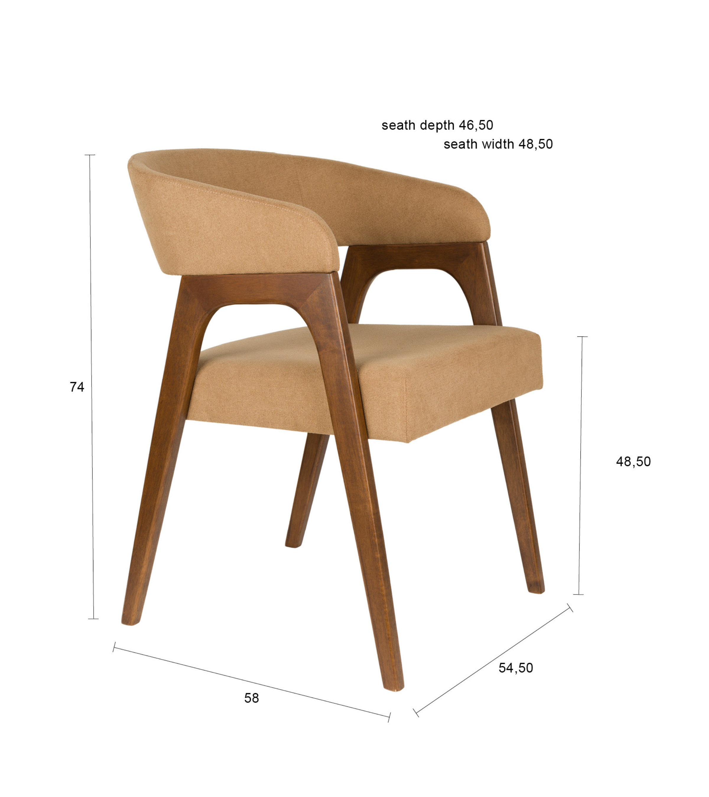 Der Stuhl Adamello ist eine stilvolle Rückkehr zur Klassik - ideal für ein Esszimmer, in dem eine warme, gemütliche Atmosphäre herrscht. Die Sitzfläche und die Rückenlehne sind mit einem glatten Stoff in einem subtilen Beigeton bezogen, der wunderschön mit dem dunklen Gestell aus gummiertem Holz in Walnussfarbe harmoniert. Der charakteristische Kontrast zwischen den abgerundeten Formen des Stuhls und den geometrischen Linien des Tisches Adamello sorgt dafür, dass das Gesamtbild faszinierend und zeitlos wirkt.