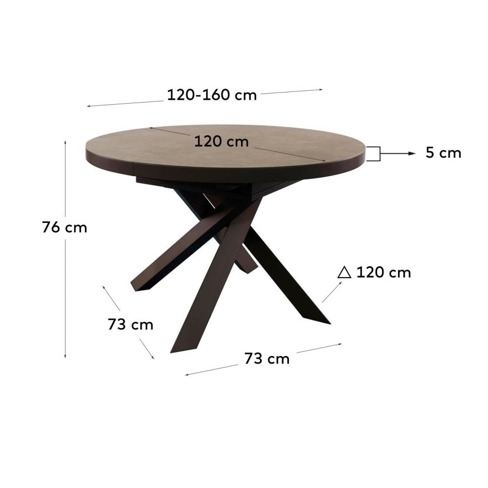 Stół rozkładany okrągły VASHTI porcelanowy blat z brązową podstawą La Forma    Eye on Design
