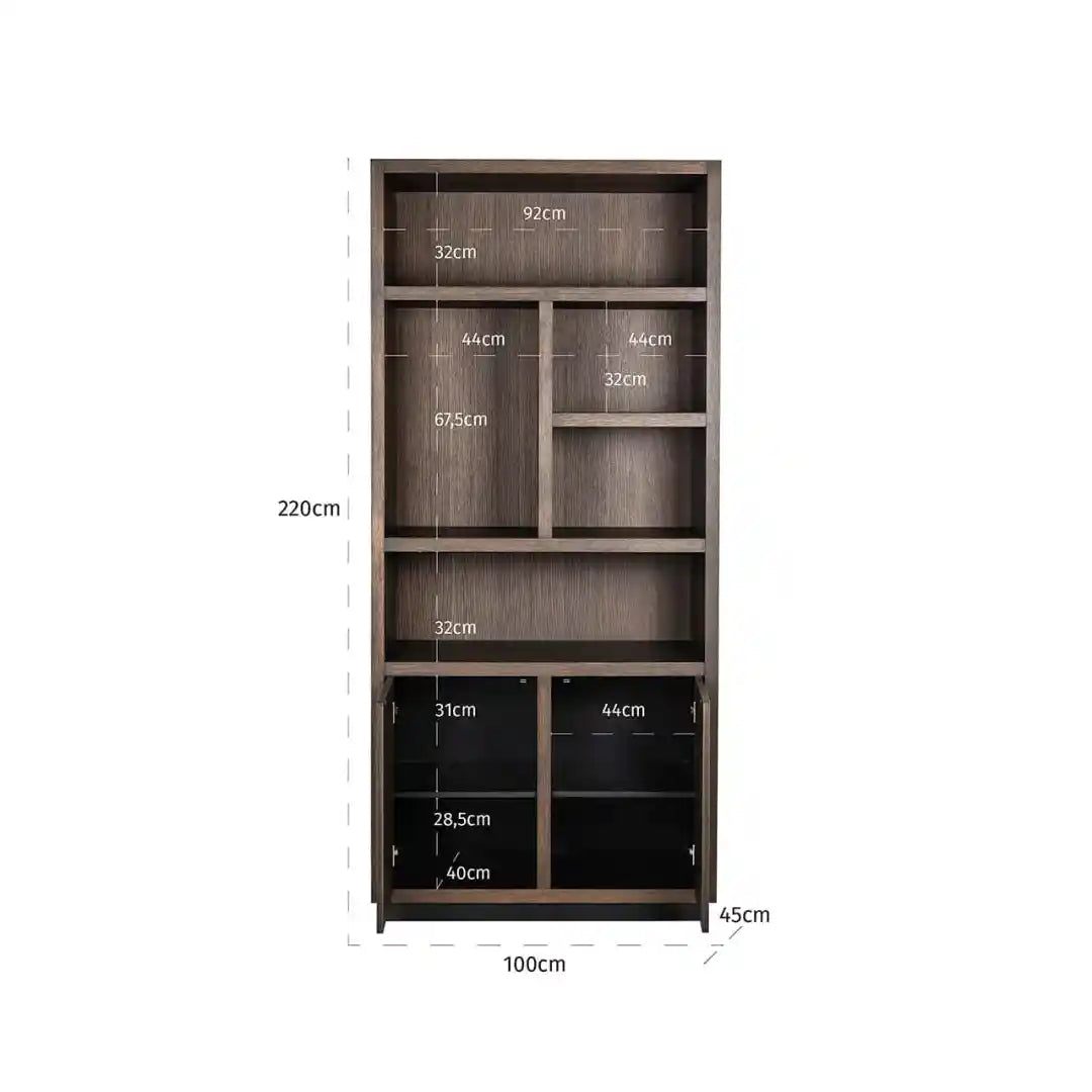 Dank seiner Kapazität und ästhetischen Konstruktion wird dasBücherregal Oakura sowohl im Wohnzimmer als auch im Büro oder in der heimischen Bibliothek eine gute Figur machen. Die unteren abschließbaren Schränke bieten zusätzlichen Stauraum, was es besonders funktional macht. Es ist die ideale Wahl, wenn Sie nach einer stilvollen und praktischen Lösung suchen – einRegal für das Wohnzimmer, das dem Raum Klasse und Ordnung verleiht. Dasbraune Regal Oakura fügt sich harmonisch in elegante Arrangements ein und verleiht ihnen eine gemütliche Note.