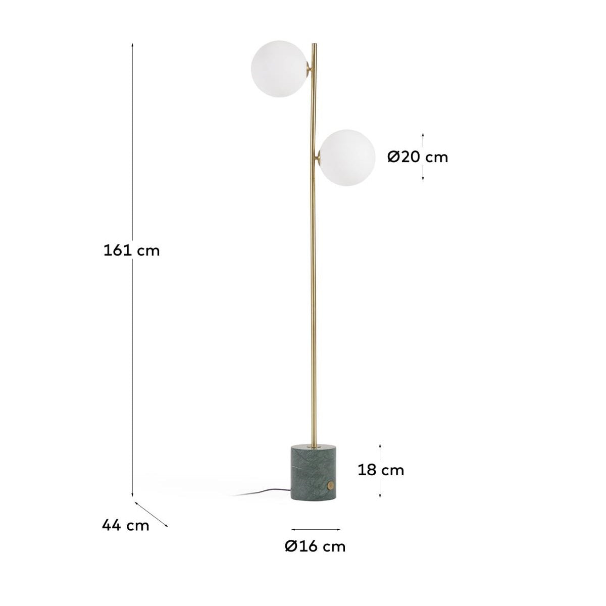 Stehlampe Lonela ist die Quintessenz des modernen Designs, die eine raffinierte Einfachheit mit einem subtilen Charme kombiniert. Ihr Lampenschirm mit Matt -Glasball, sanft an der Messingstruktur befestigt, strahlt mit einem einzigartigen Glanz aus, was dem Raum einen einzigartigen Charakter verleiht.