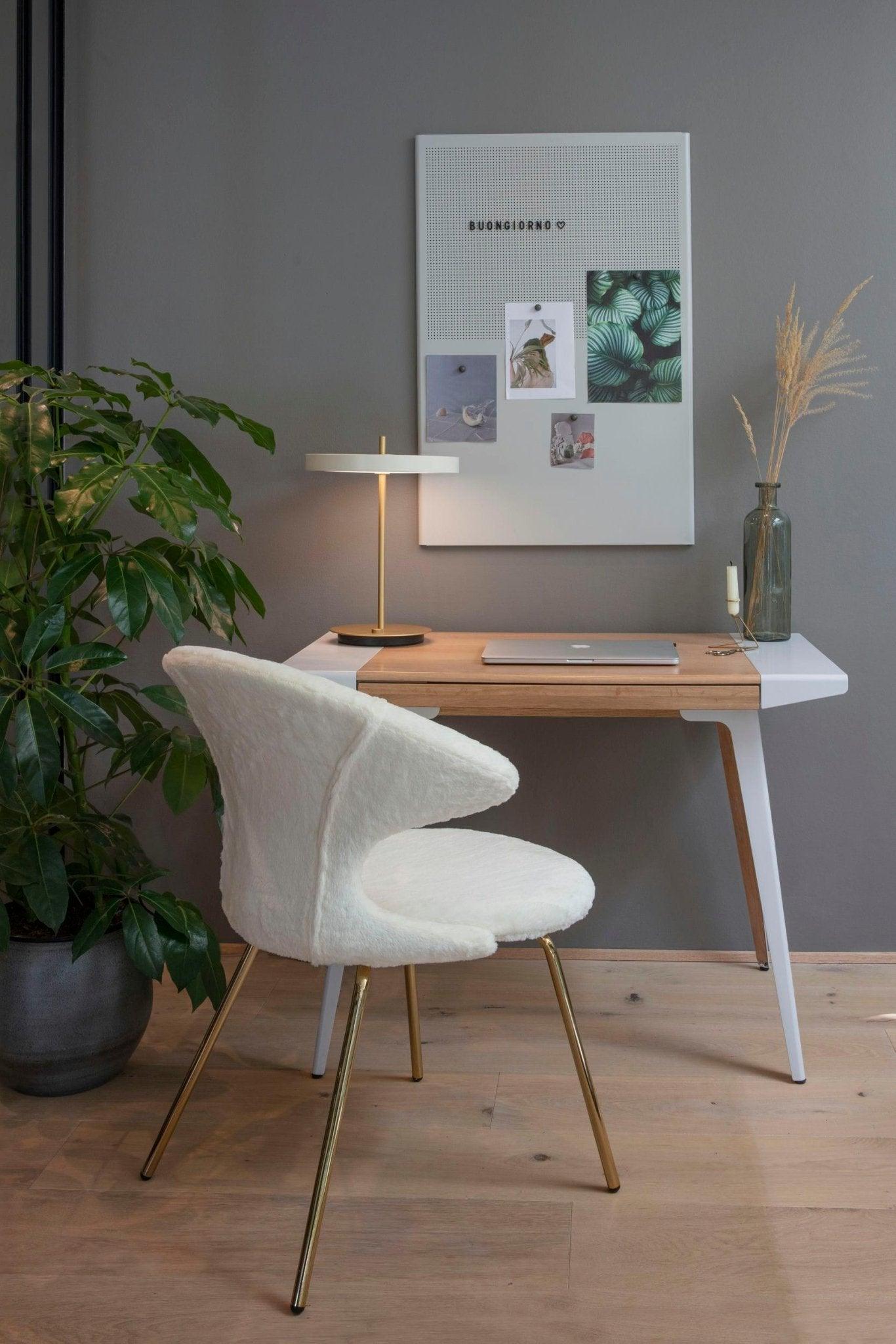 Time Flyies Stuhl Cream Plüsch mit einer goldenen Basis