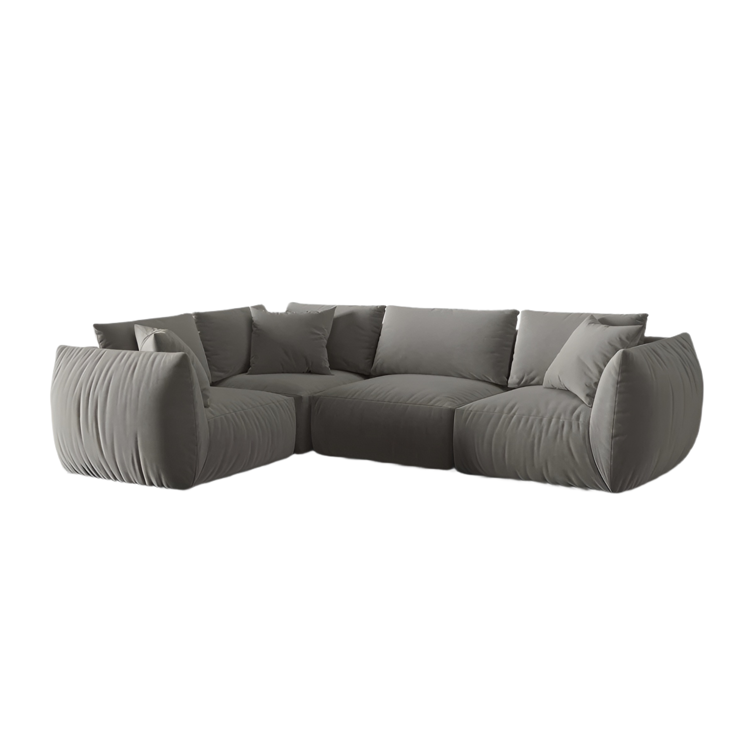 Der samtige Ecksofa Chris ist ein elegantes und funktionales Möbelstück, das modernes Design mit maximalem Komfort vereint. Sein geräumiges Sitzkissen, die weichen Rückenkissen und der angenehm zu berührende Samtstoff schaffen einen Raum, der zur Entspannung und Erholung einlädt. Der zarte Glanz des Materials verleiht dem Gesamtbild einen luxuriösen Charakter, und die glatte, plüschige Struktur sorgt dafür, dass das Möbelstück besonders stilvoll wirkt. Ecksofa Chris fügt sich sowohl in moderne als auch in klassische Inneneinrichtungen perfekt ein und bringt Gemütlichkeit und Eleganz in jeden Raum.
