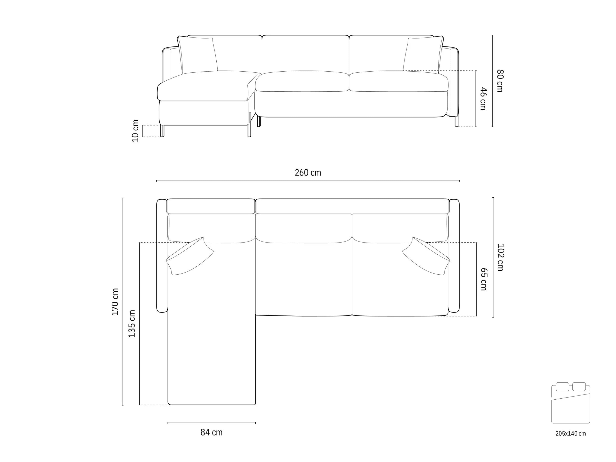 Velvet Linksecke Sofa mit Bettfunktion, "Gloria", 4 Sitze, Royal Blue, 260x170x80 In Europa gemacht