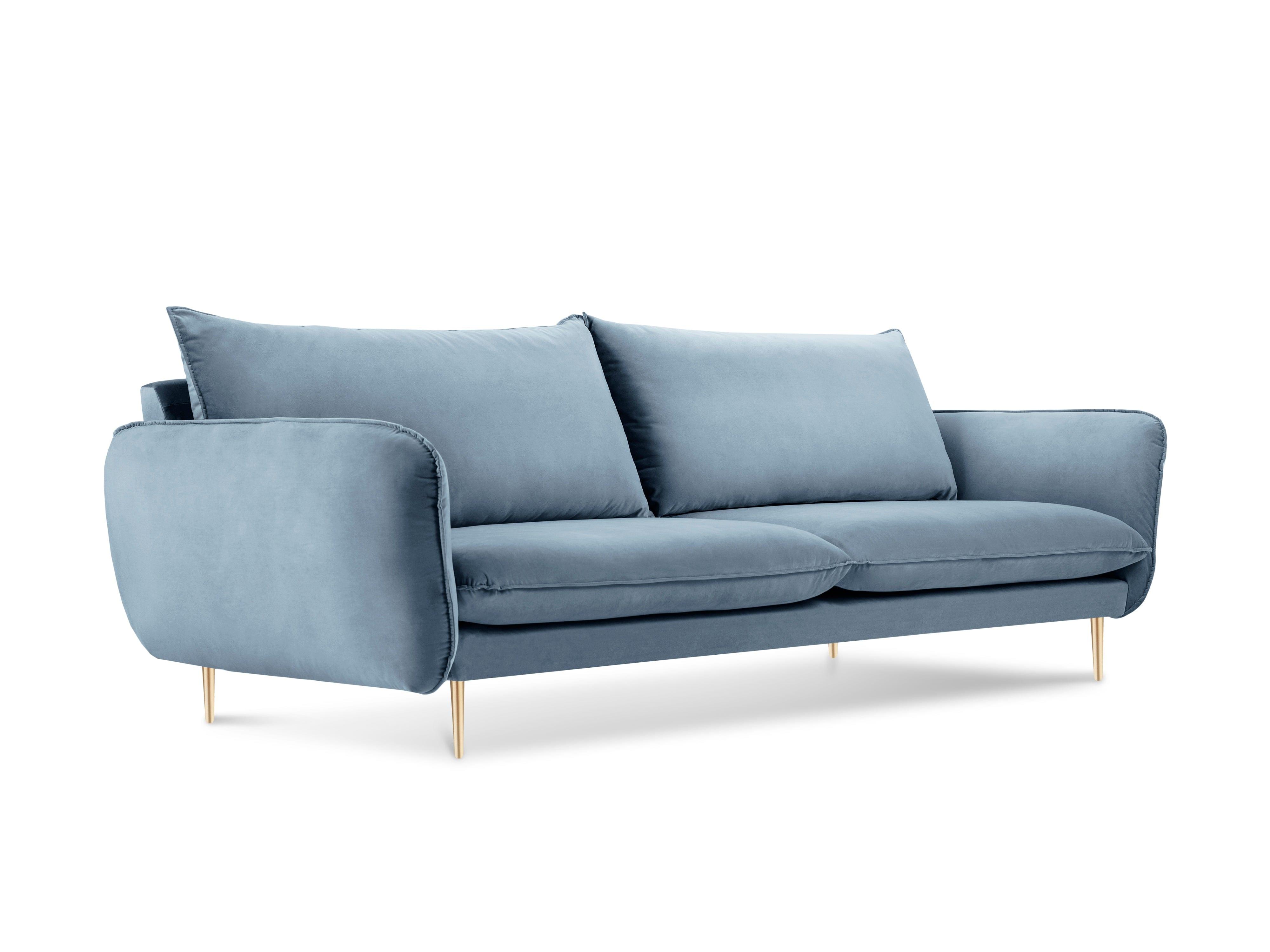 Sofa aksamitna 3-osobowa VIENNA jasnoniebieski ze złotą podstawą Cosmopolitan Design    Eye on Design
