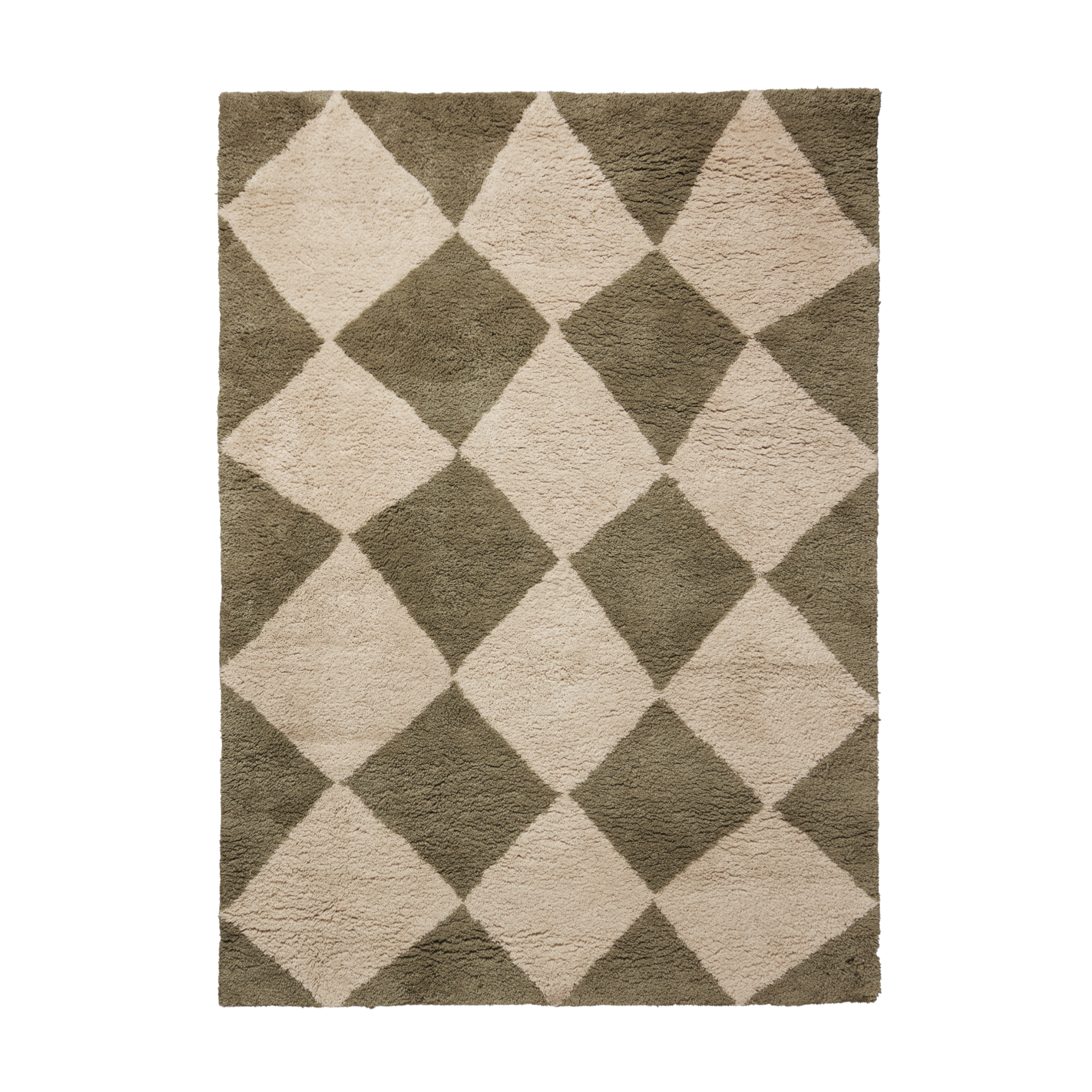 Dieser stilvolle Teppich fügt sich perfekt in moderne, minimalistische oder skandinavische Innenräume ein, wo er zu einem markanten, aber nicht überwältigenden dekorativen Element wird. Seine natürliche Farbpalette in Grüntönen bringt Ruhe und Harmonie in den Raum und betont gleichzeitig den Charakter der Einrichtung.