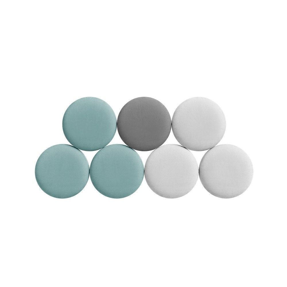 Das Kopfteil besteht aus einzelnen runden Panels, die in jeder Menge miteinander platziert werden können.