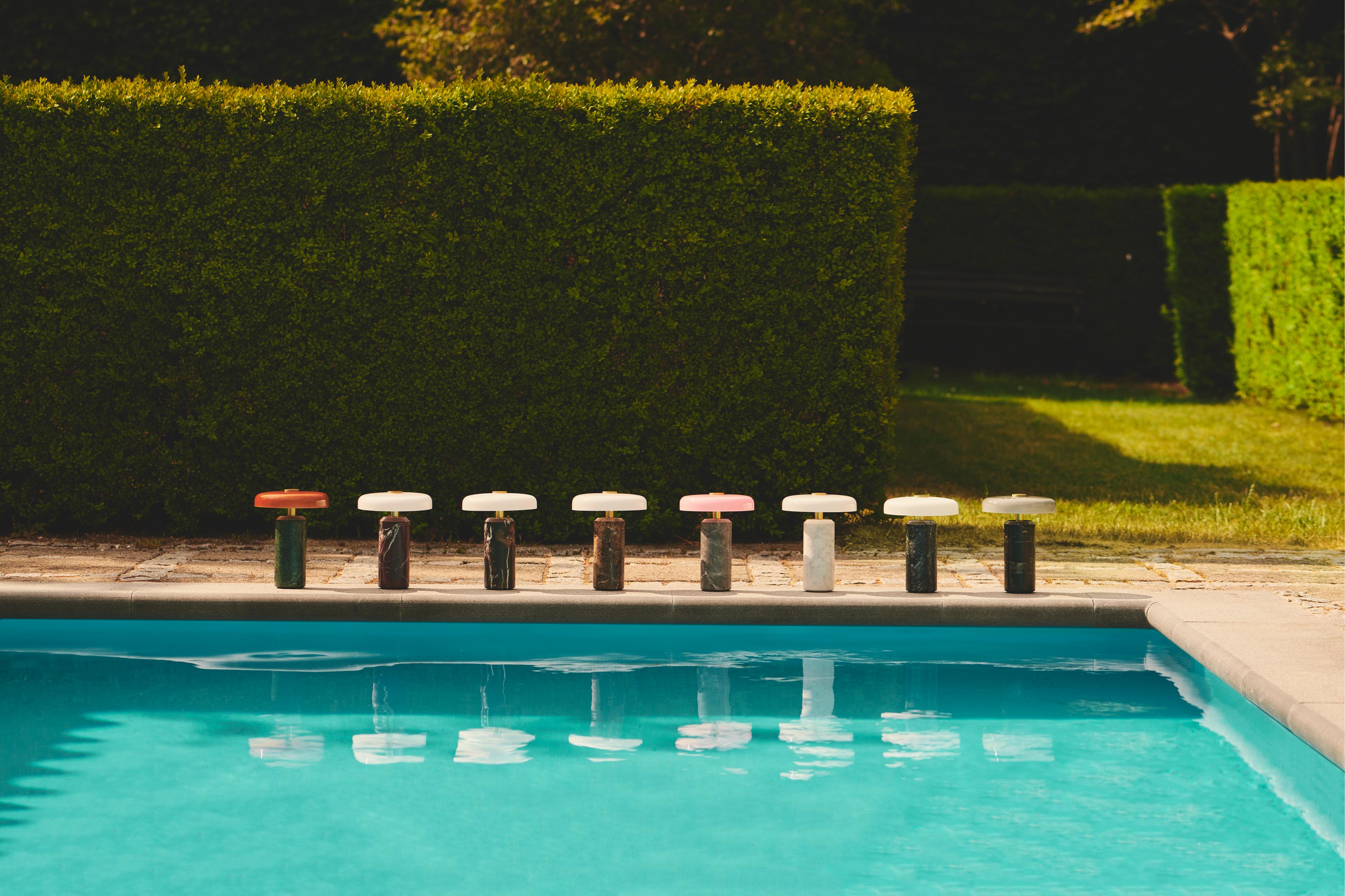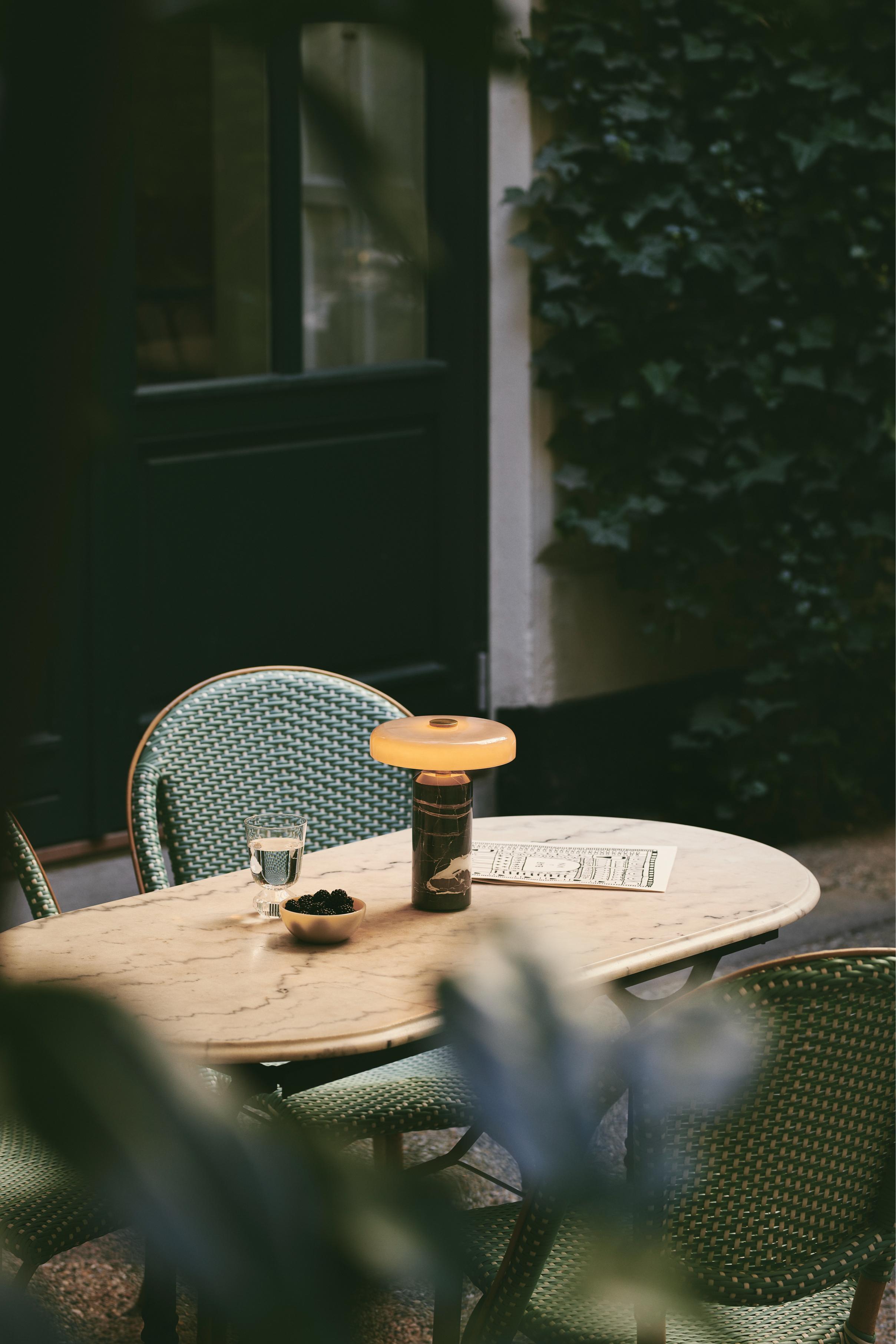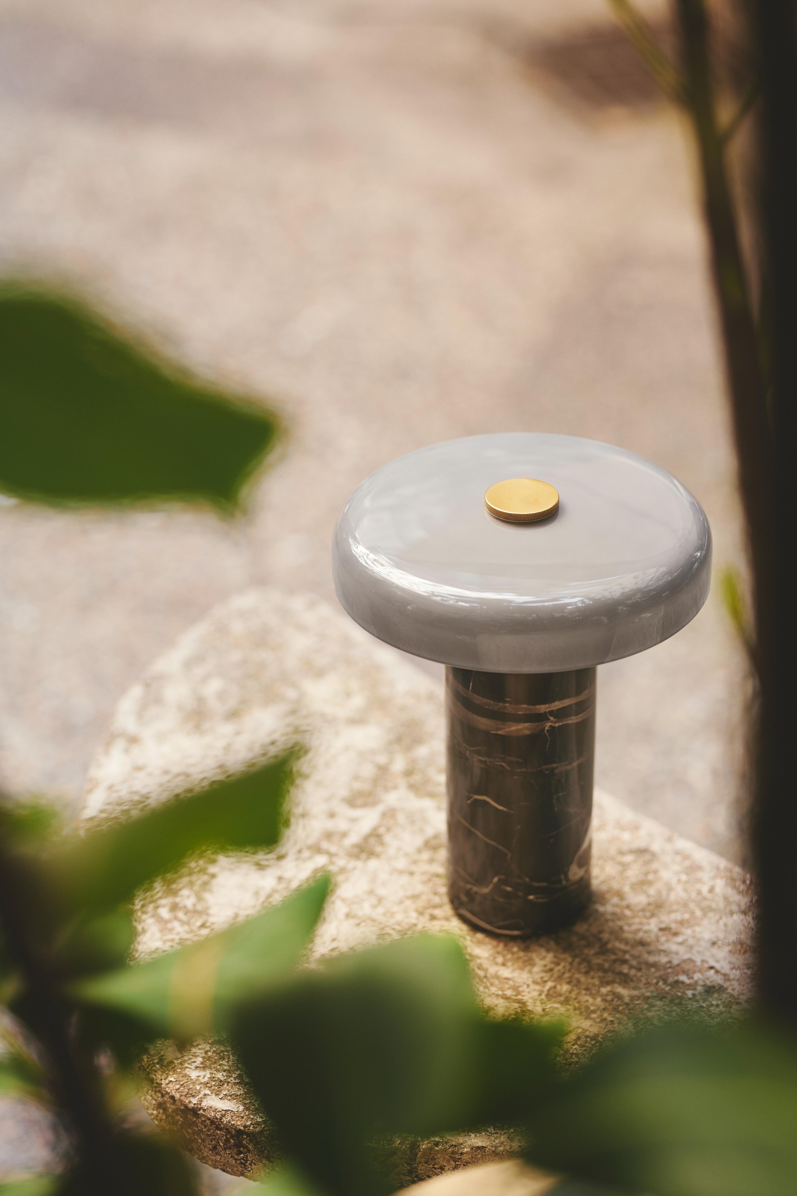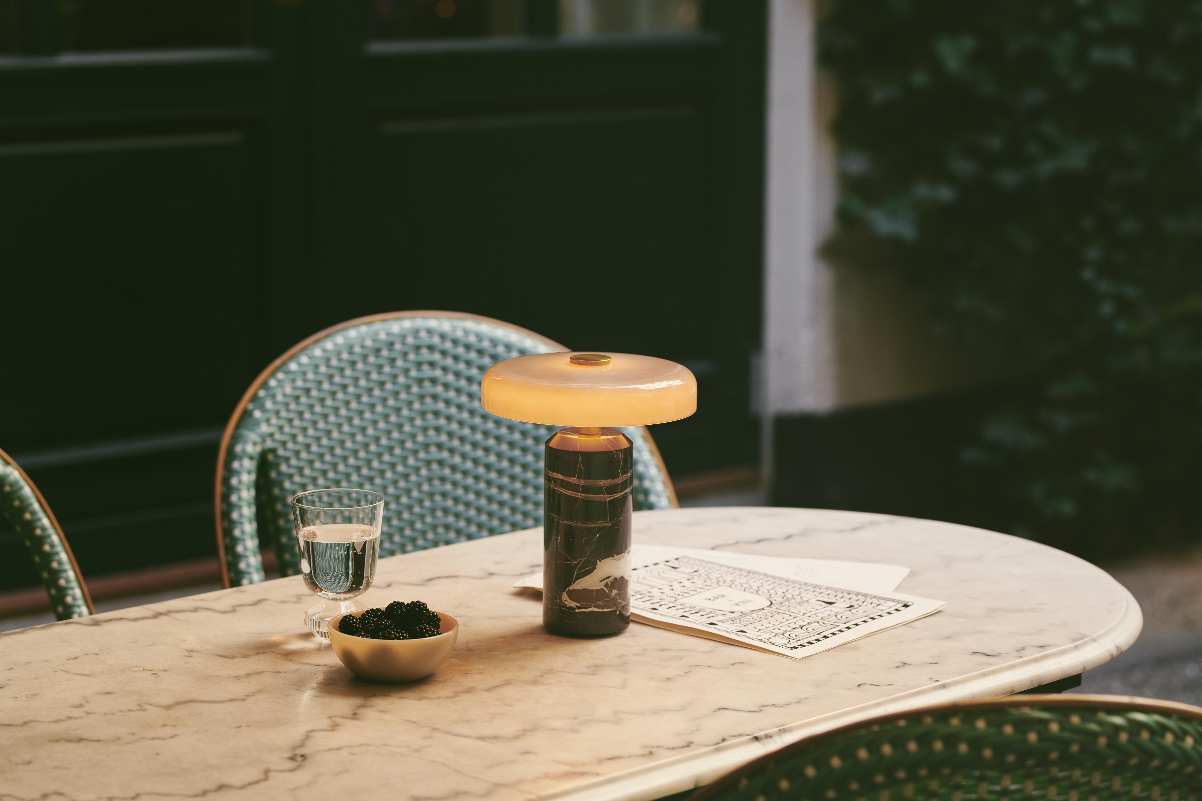 Hergestellt aus poliertem Marmor und handgeblasenem Glas, verbindet die Lampe Trip natürliche Materialien mit durchdachten Details. Sie ist mit einem berührungsempfindlichen, dreistufigen Dimmer ausgestattet, sodass Sie die Lichtintensität leicht an die Situation anpassen können – von einem gemütlichen Abend bis hin zu funktionaler Beleuchtung während eines Treffens. Die lange Akkulaufzeit und die sorgfältige Verarbeitung machen die tragbare Lampe Trip sowohl zu einer praktischen Lichtquelle als auch zu einem stilvollen dekorativen Accessoire.