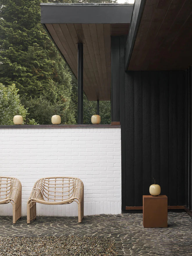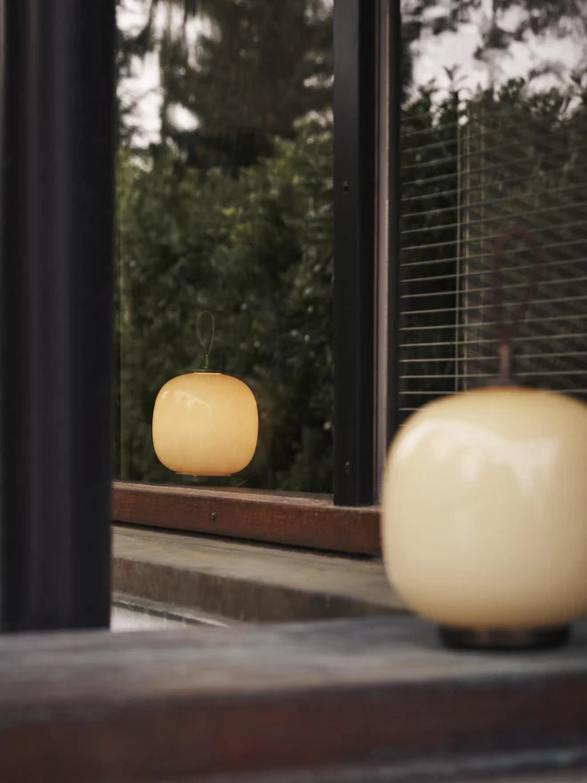 Tragbare Lampe VL 45 blassgelb mit schwarzem Sockel