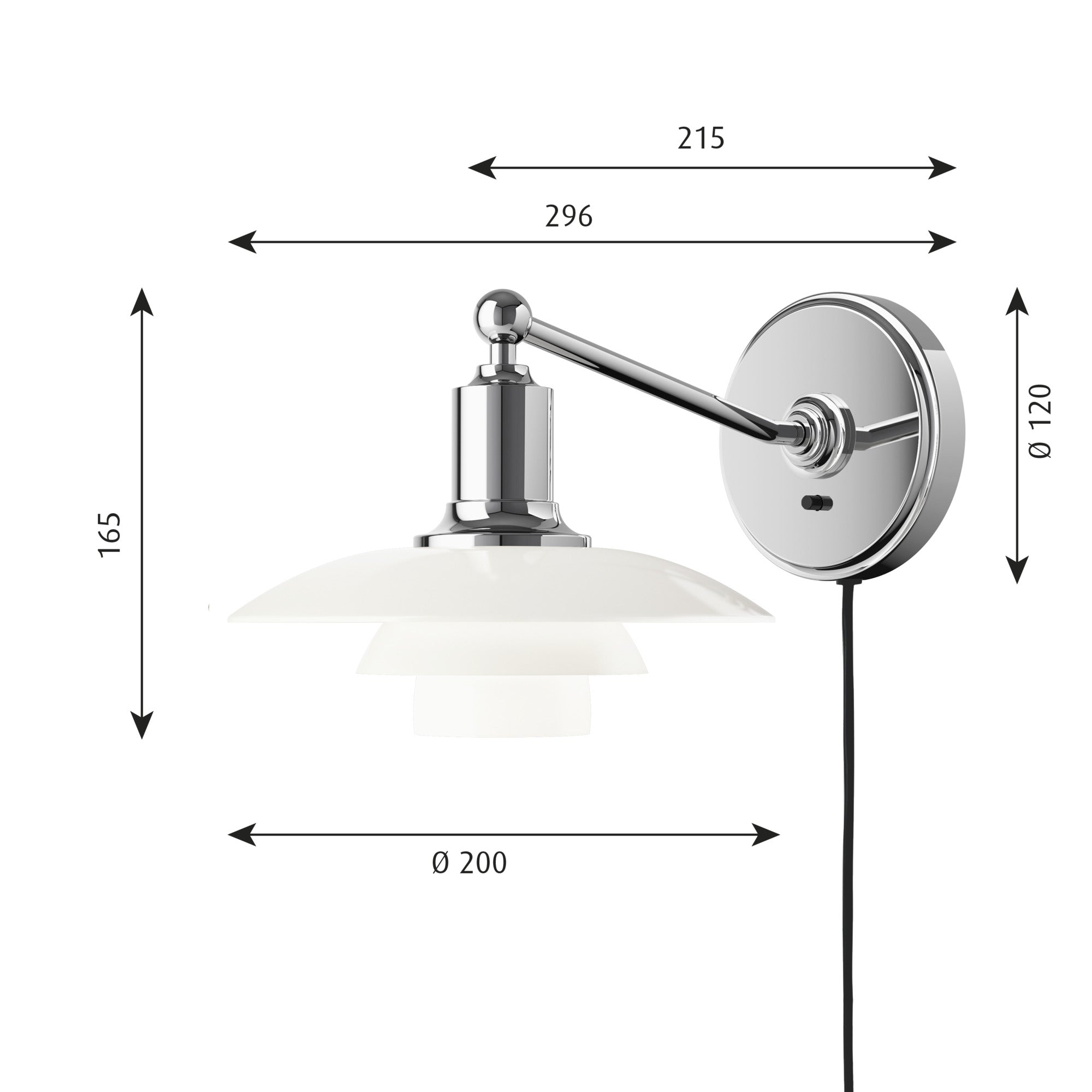 Wandleuchte PH 2/1 weiß mit verchromtem Sockel