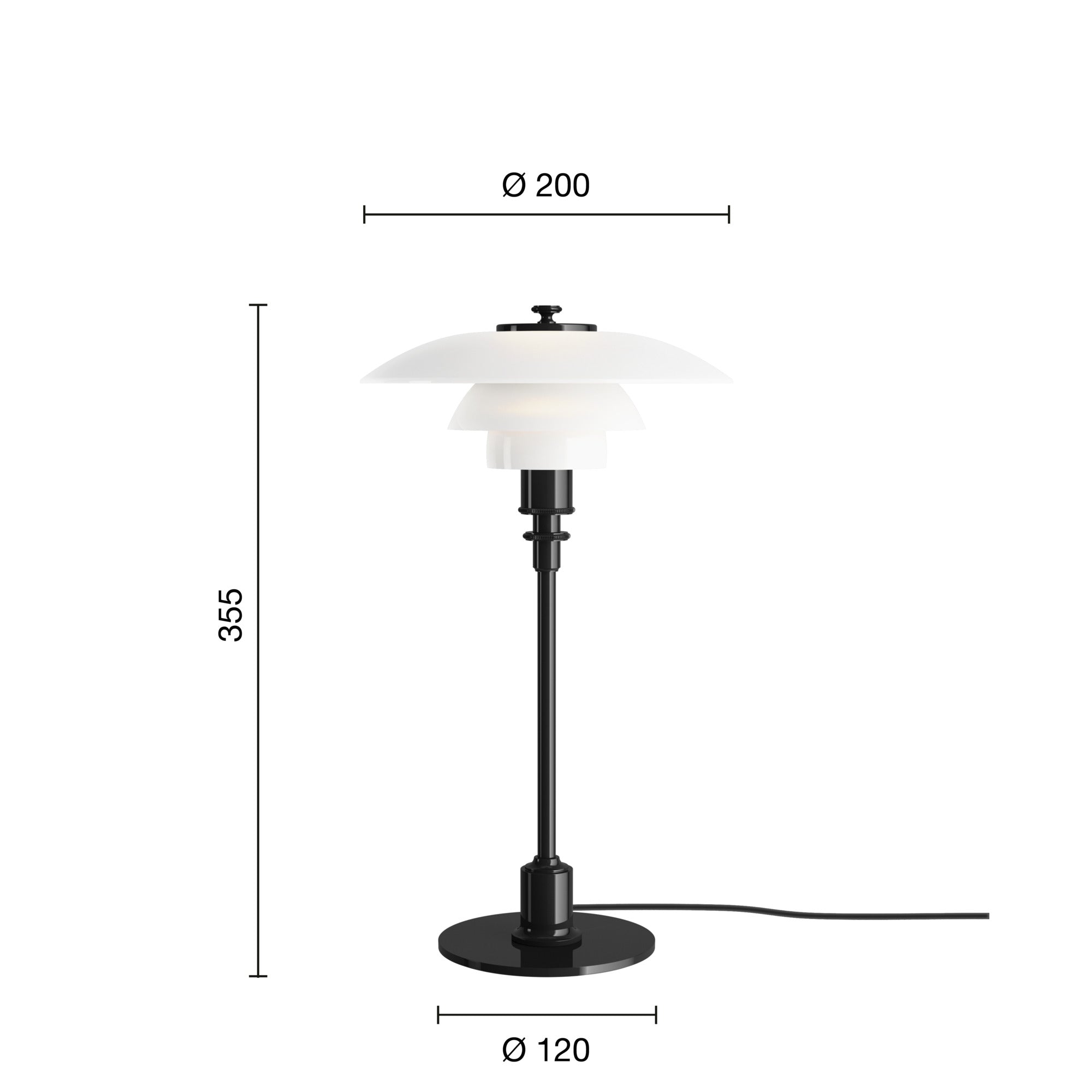 Tischlampe PH 2/1 ist ein klassisches Werk von Poul Henningsen, entworfen auf der Grundlage seines berühmten, dreischaligen Systems aus dem Jahr 1925, das vollkommen blendfreies Licht und sanfte, harmonische Beleuchtung bietet. Die Schirme aus dreilagigem, mundgeblasenem opalem Glas lenken das Licht hauptsächlich nach unten und schaffen einen angenehmen, gleichmäßigen Schein. Dank ihrer zeitlosen Form und perfekten Proportionen stellt die Tischlampe PH 2/1 einen eleganten Akzent auf dem Schreibtisch, der Kommode oder dem Nachttisch dar – sowohl in klassischen als auch in modernen Innenräumen.