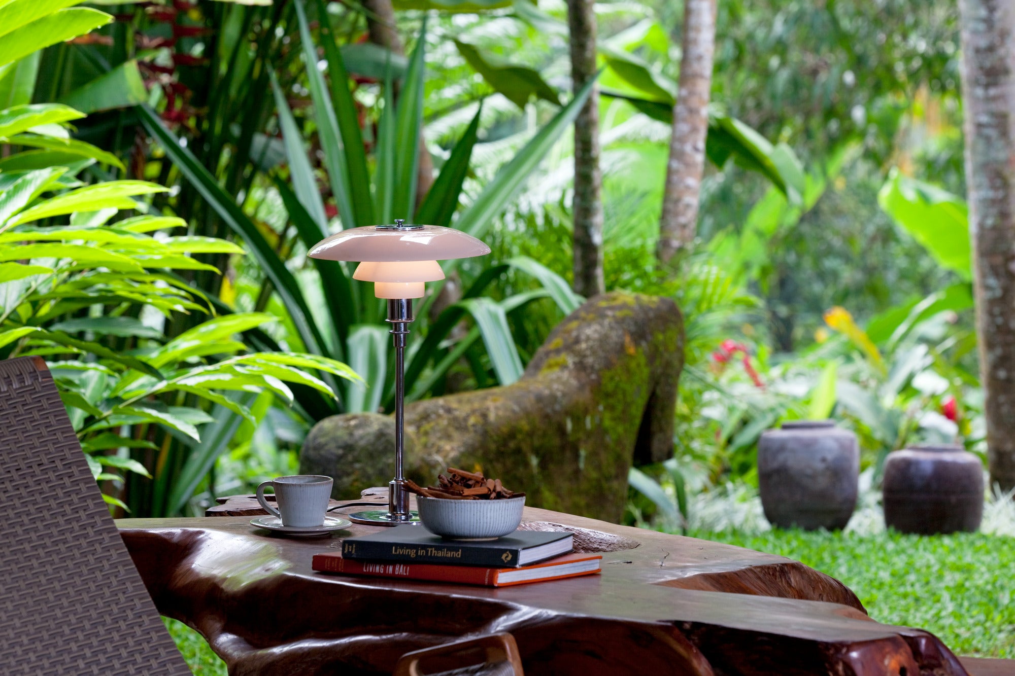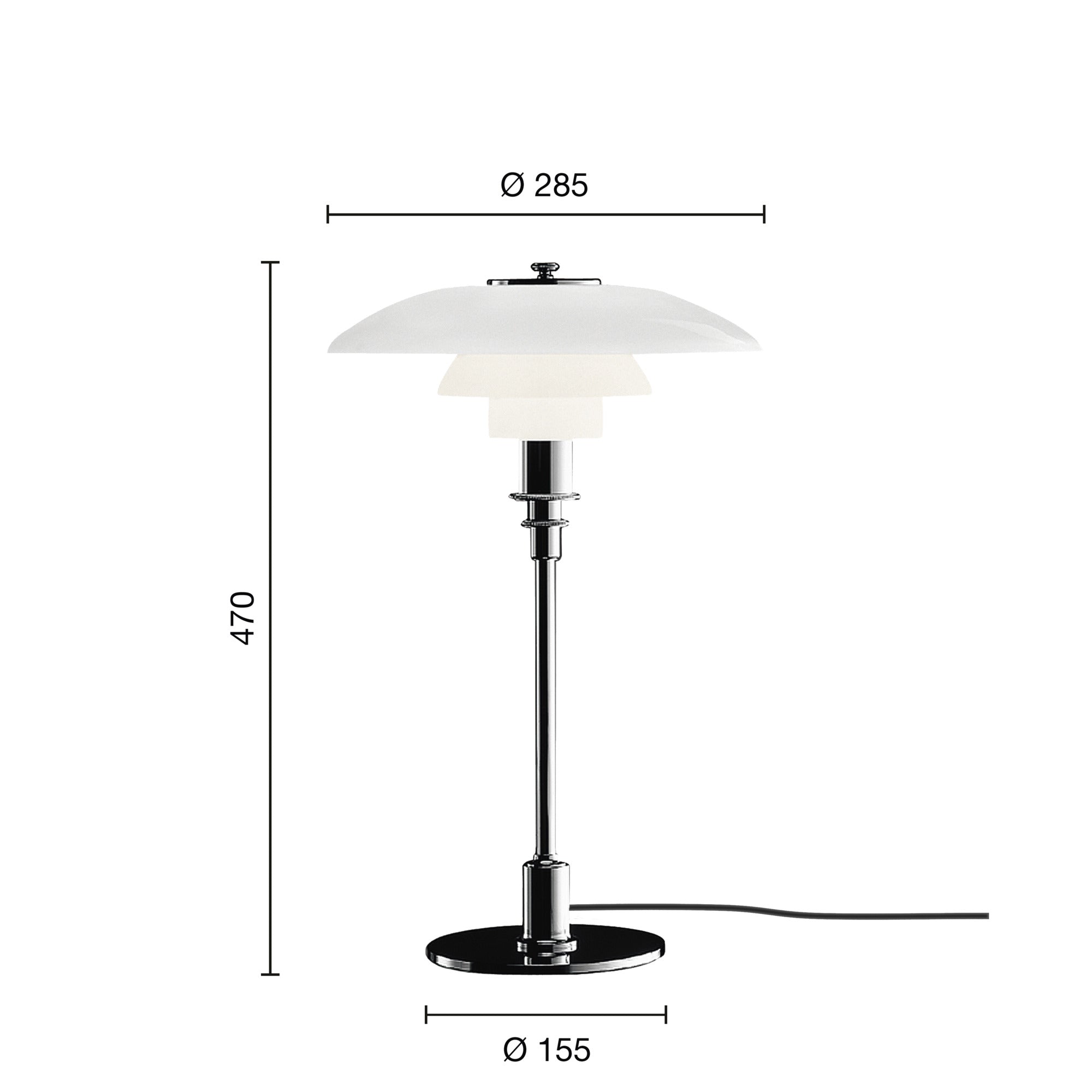 Tischlampe PH 3/2 weiß mit verchromtem Fuß