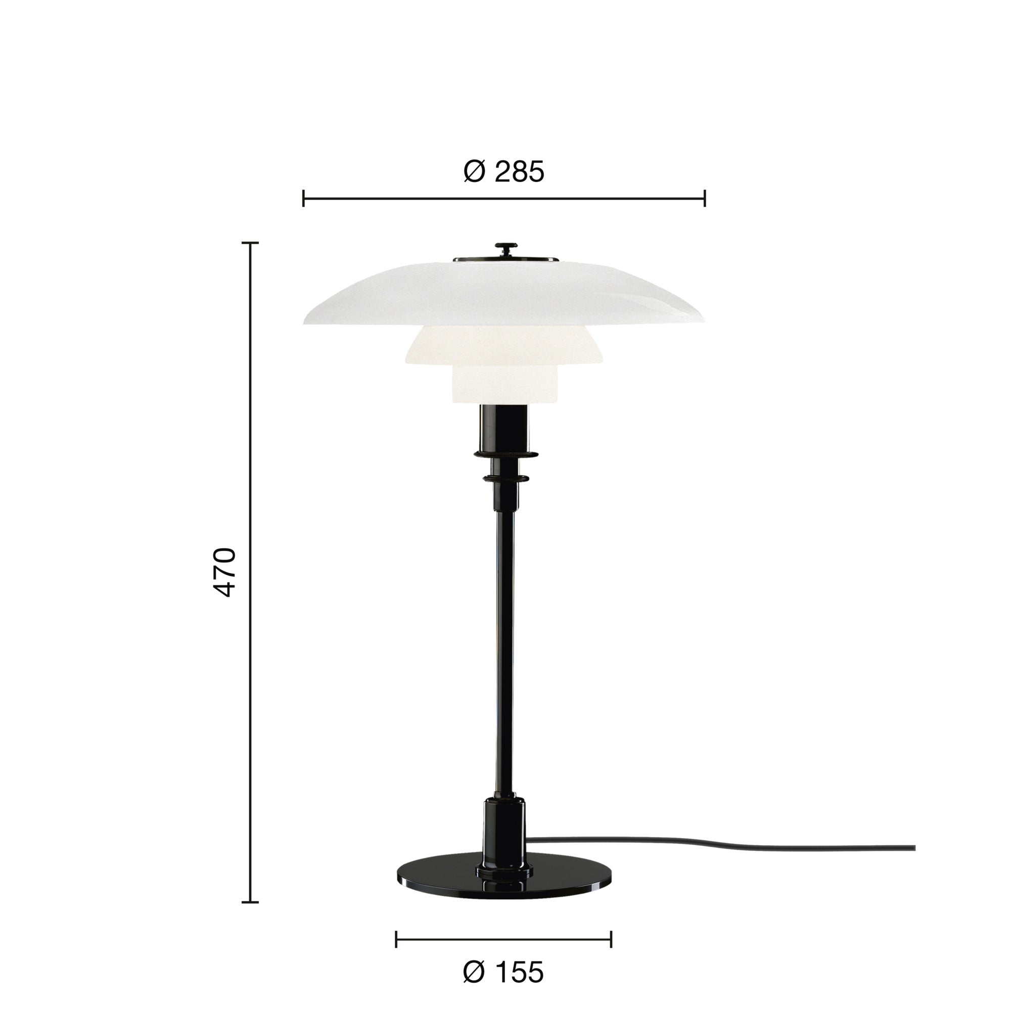 Tischlampe PH 3/2 weiß mit schwarzem Fuß