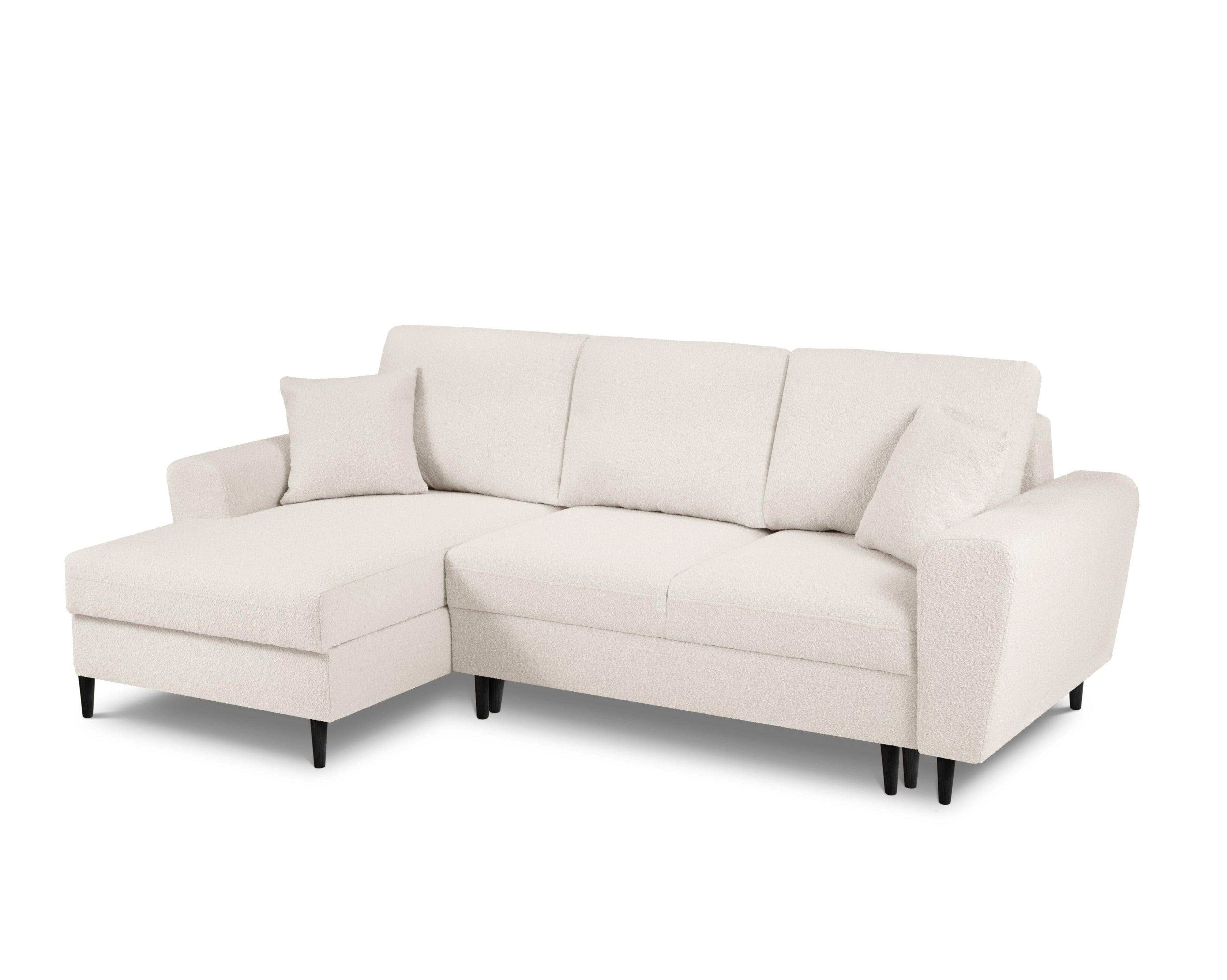 Narożnik lewostronny z funkcją spania KYOTO beżowy bouclé z czarną podstawą Cosmopolitan Design    Eye on Design