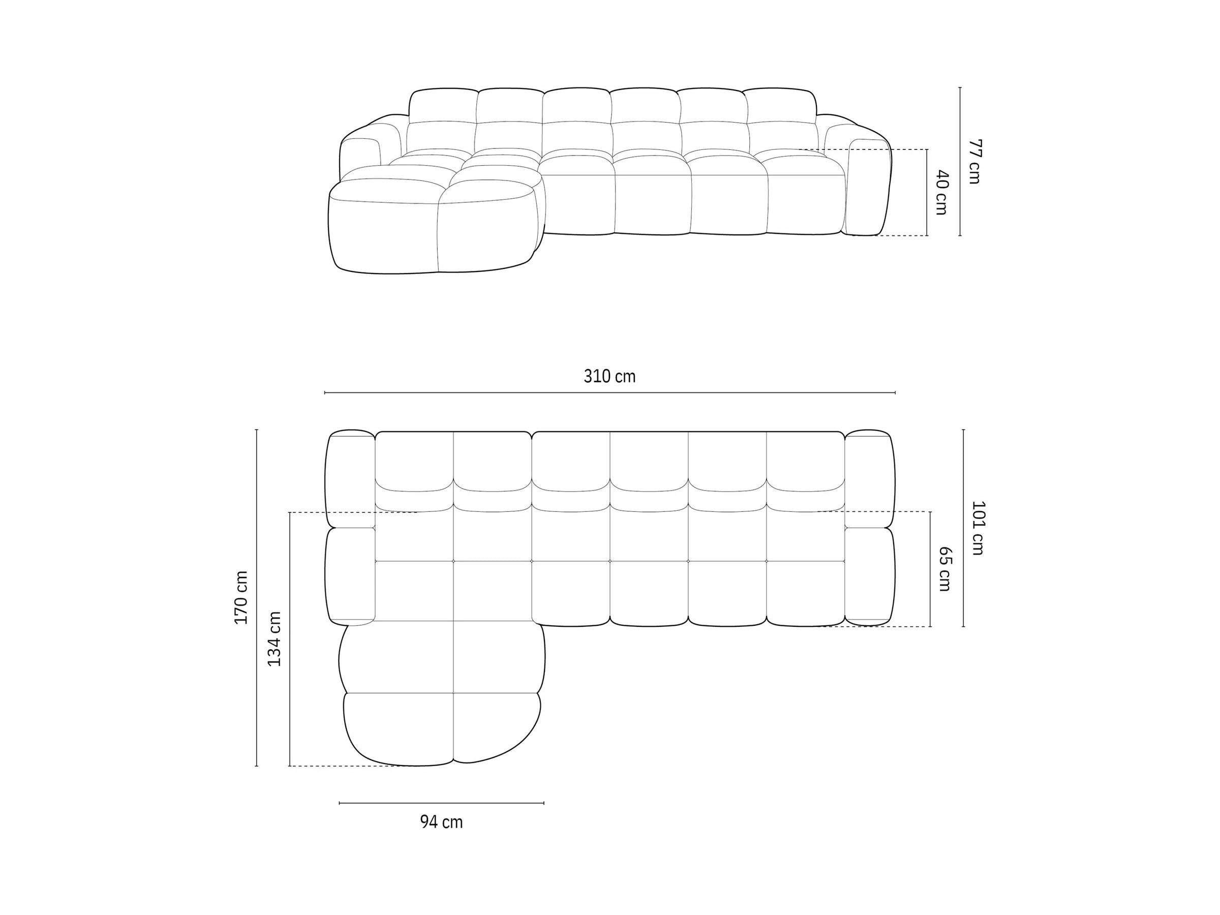 Der Bezug besteht aus einer Kombination von zwei Arten von Schaumstoffen: einem elastischen und formbeständigen HR-Schaum sowie einem dichten, sich an den Körper anpassenden Memory-Schaum. In den Sitzflächen wurden zudem robuste Taschenfedern eingesetzt, die den Komfort und die Langlebigkeit erhöhen. Dank dieser Konstruktion passt sich die Eckcouch Lisa perfekt an die Körperform an und bietet unvergleichliche Unterstützung und Bequemlichkeit in jeder Position. Es ist ein Möbelstück, das Funktionalität, Design und Komfort auf höchstem Niveau vereint.