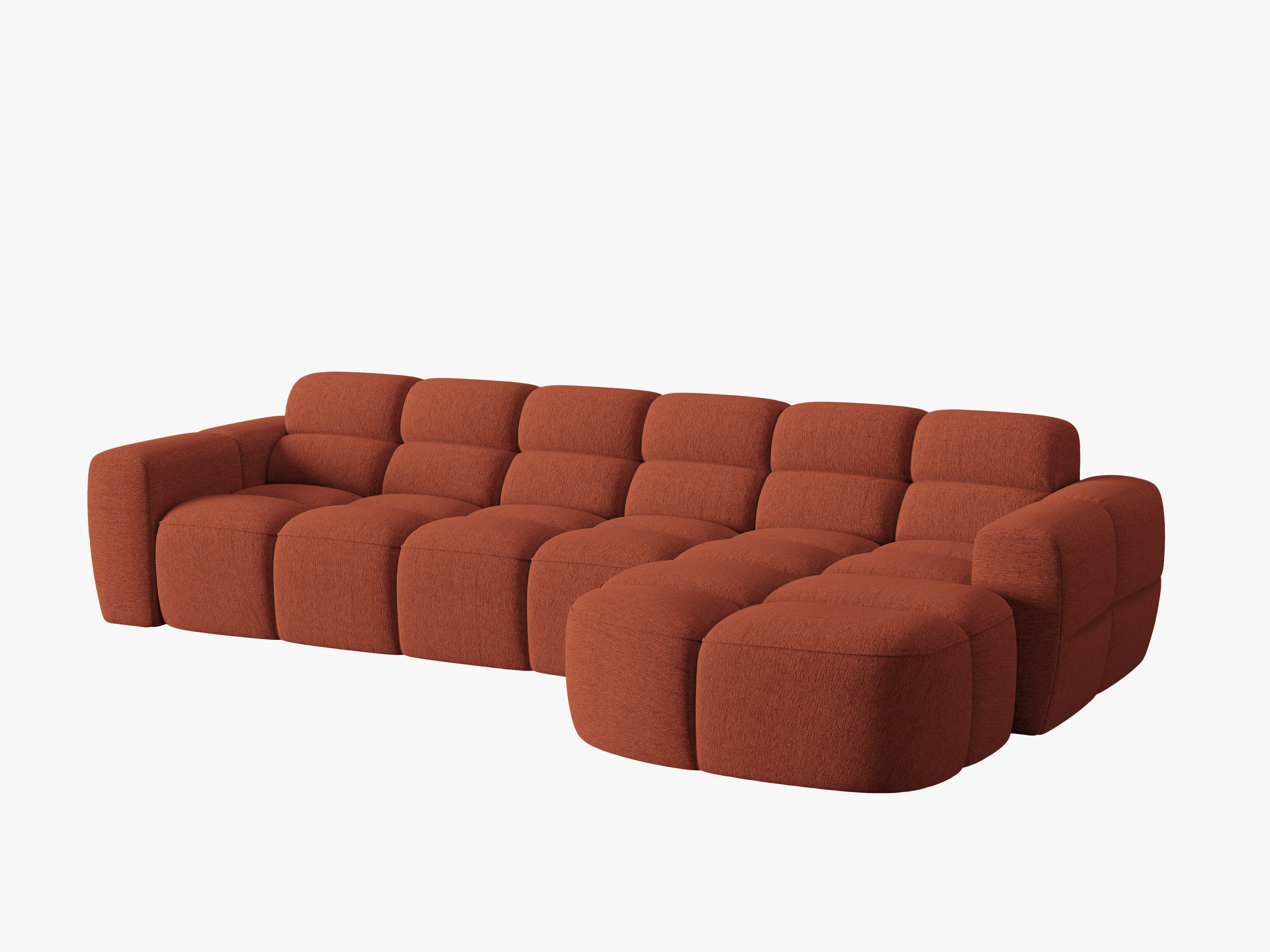 Nrożnik Lisa to połączenie nowoczesnej formy, elegancji i wyjątkowego komfortu. Jego wyrazisty, współczesny design przyciąga uwagę, a dopracowane detale podkreślają wysoką jakość wykonania. Głębokie siedziska, miękkie oparcia i ergonomiczny szezlong sprawiają, że narożnik Lisa staje się doskonałym miejscem relaksu – idealnym zarówno do popołudniowego odpoczynku, jak i spotkań w gronie rodziny czy przyjaciół.