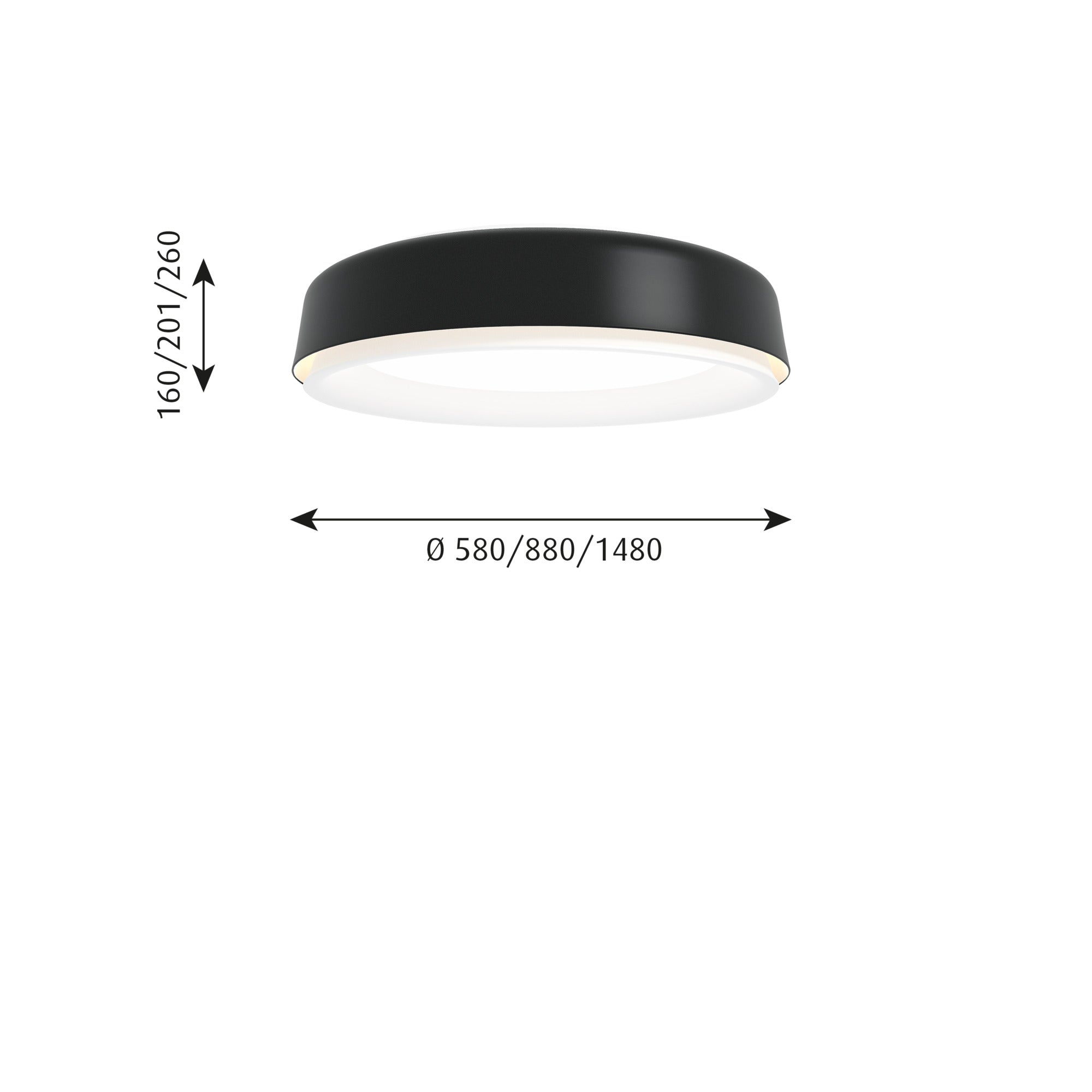 Wariant o średnicy Ø320 wyróżnia się możliwością montażu zarówno na suficie, jak i na ścianie, co pozwala tworzyć spójne, dekoracyjne kompozycje świetlne. Pozostałe rozmiary (Ø580, Ø880, Ø1480) przeznaczone są do montażu tylko na suficie.