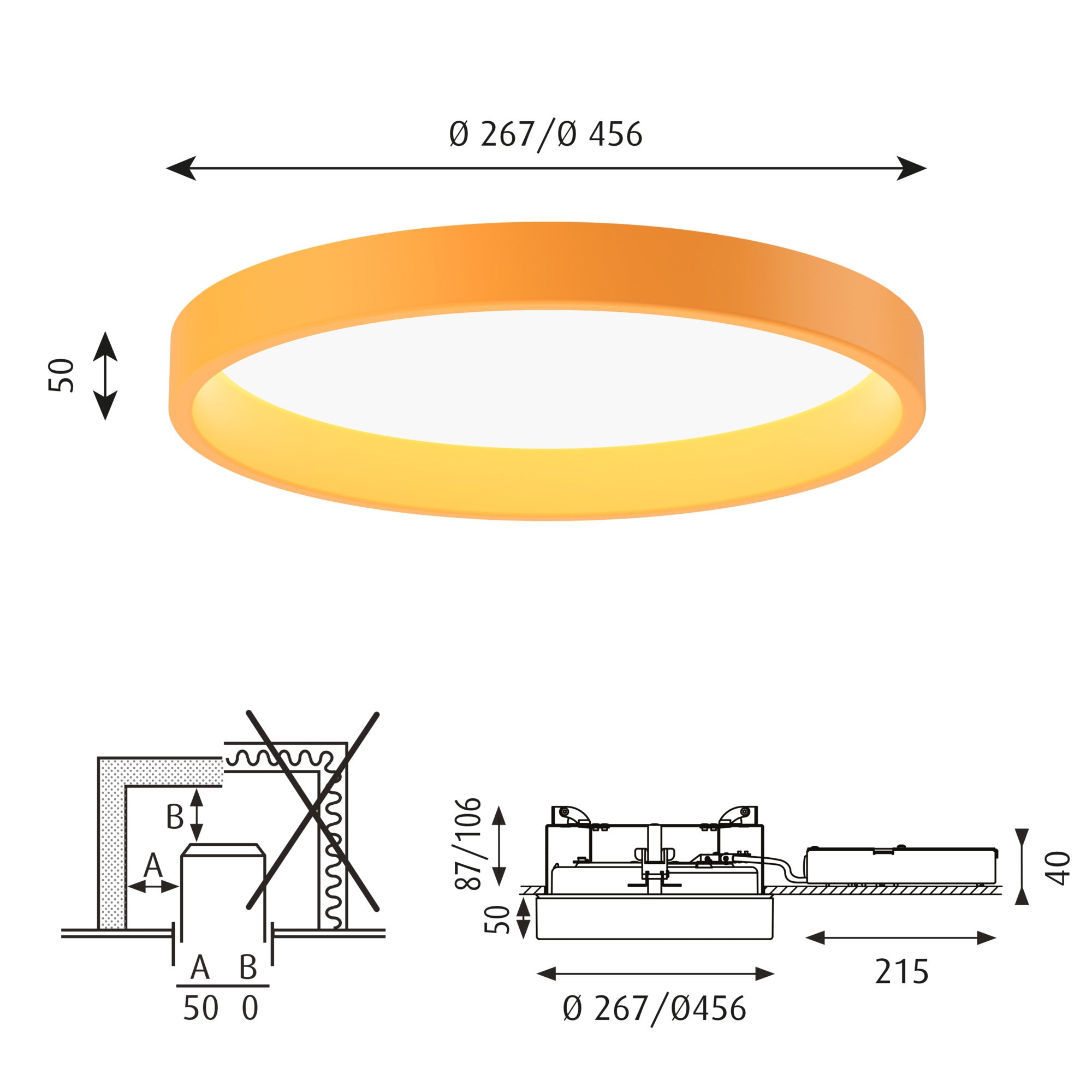 Plafon podtynkowy LP CIRCLE SEMI-RECESSED żółty