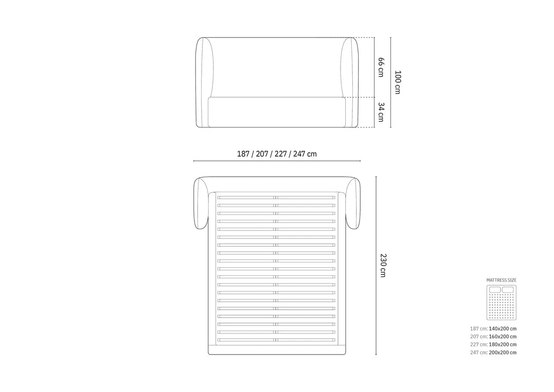 Bett aus der Kollektion Miley begeistert mit modernem Design und sanften Formen, die perfekt in die aktuellen Einrichtungstrends passen. Die minimalistische, harmonische Form vereint Eleganz und Komfort und schafft einen einzigartigen Ort der Entspannung. Die niedrige, umschmeichelnde Kopfstütze mit sanfter Profilierung unterstreicht die weiche, gemütliche Ästhetik des Bettes. Abgerundete Linien und Proportionen verleihen ihm Leichtigkeit, während die solide Konstruktion Stabilität und Langlebigkeit für Jahre gewährleistet.