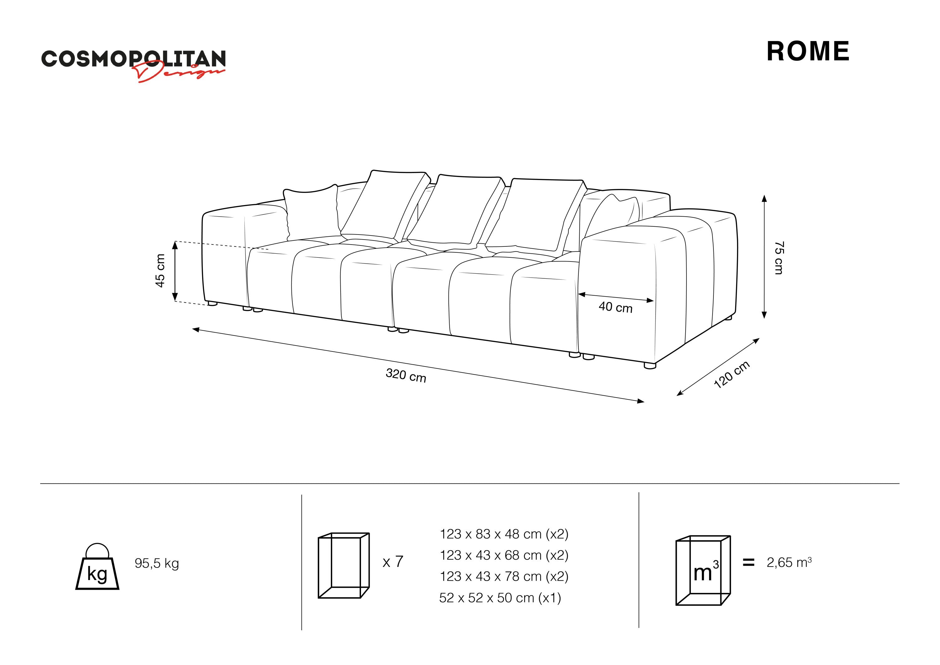 Rom ist eine erstaunliche Kombination aus Eleganz, Komfort und Moderne. Das schöne Sofa ist wunderschön, luxuriöser Stoffund seine einzigartige Farbe erzeugt unzählige Anordnungsmöglichkeiten. Das Sofa sieht nicht nur gut aus, sondern ist auch sehr angenehm angenehm und resistent gegen Abrieb.