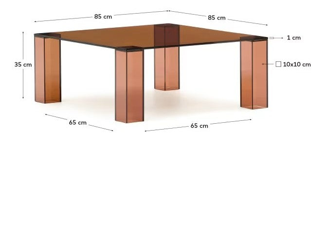 Quadratischer Couchtisch ADULARIA mit braunem, gehärtetem Glas