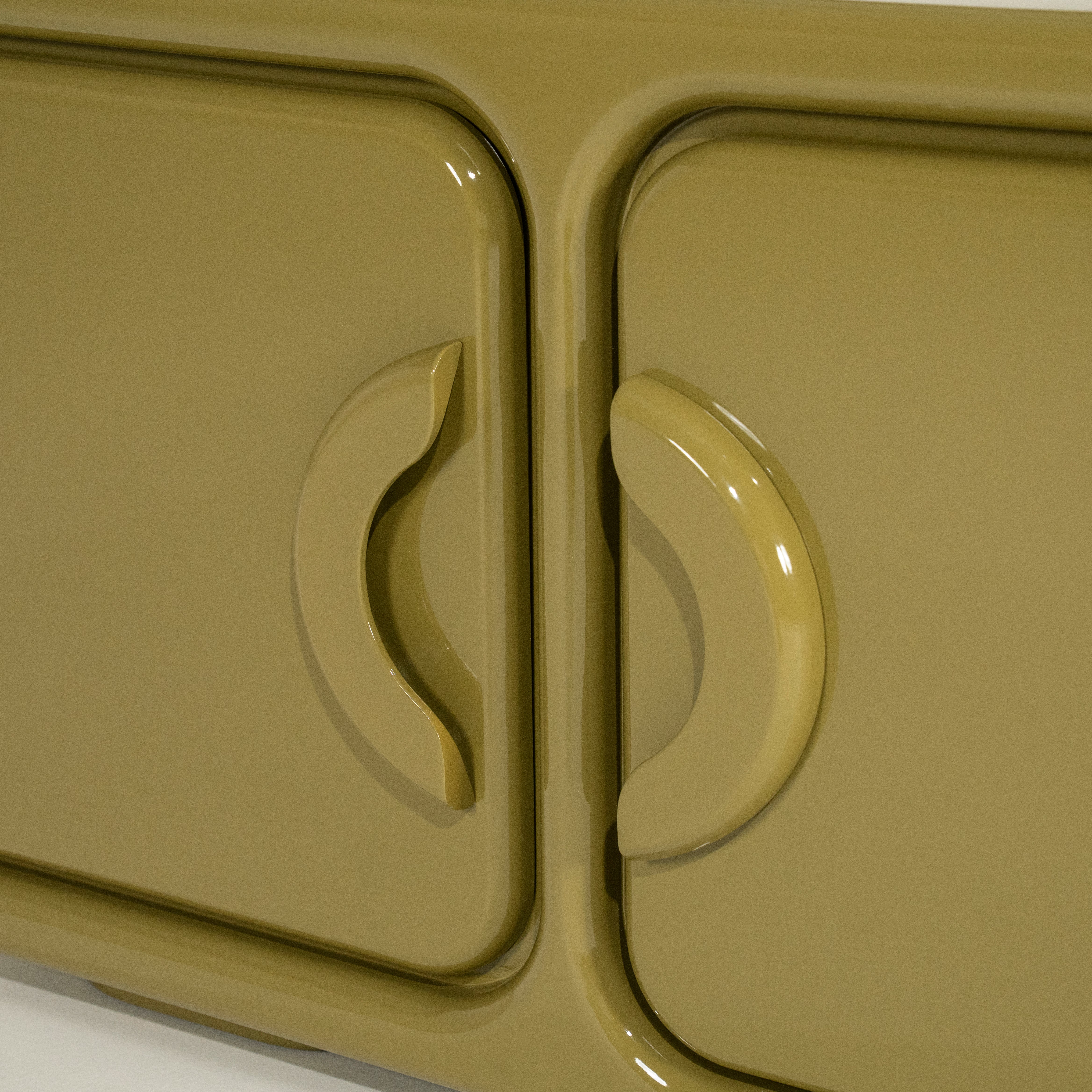 Szafka RTV Gubby to wyjątkowy mebel, który łączy nowoczesny design z subtelnym retro charakterem. Zaokrąglone krawędzie, minimalistyczne uchwyty i wysoki połysk nadają jej elegancki, futurystyczny wygląd, który przyciąga wzrok i wprowadza do wnętrza nutę stylowej lekkości. Szafka doskonale sprawdzi się w salonie jako podstawa pod telewizor lub jako element dekoracyjny, oferując jednocześnie praktyczną przestrzeń do przechowywania.