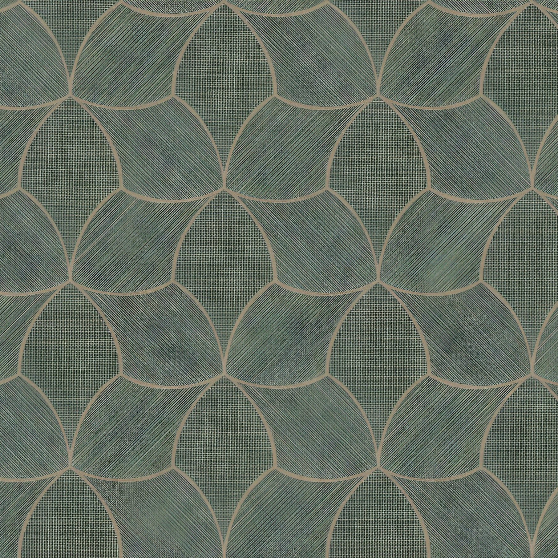 Tapeta imitująca haft NAMI - CÉLADON/LIN szałwiowy z beżem