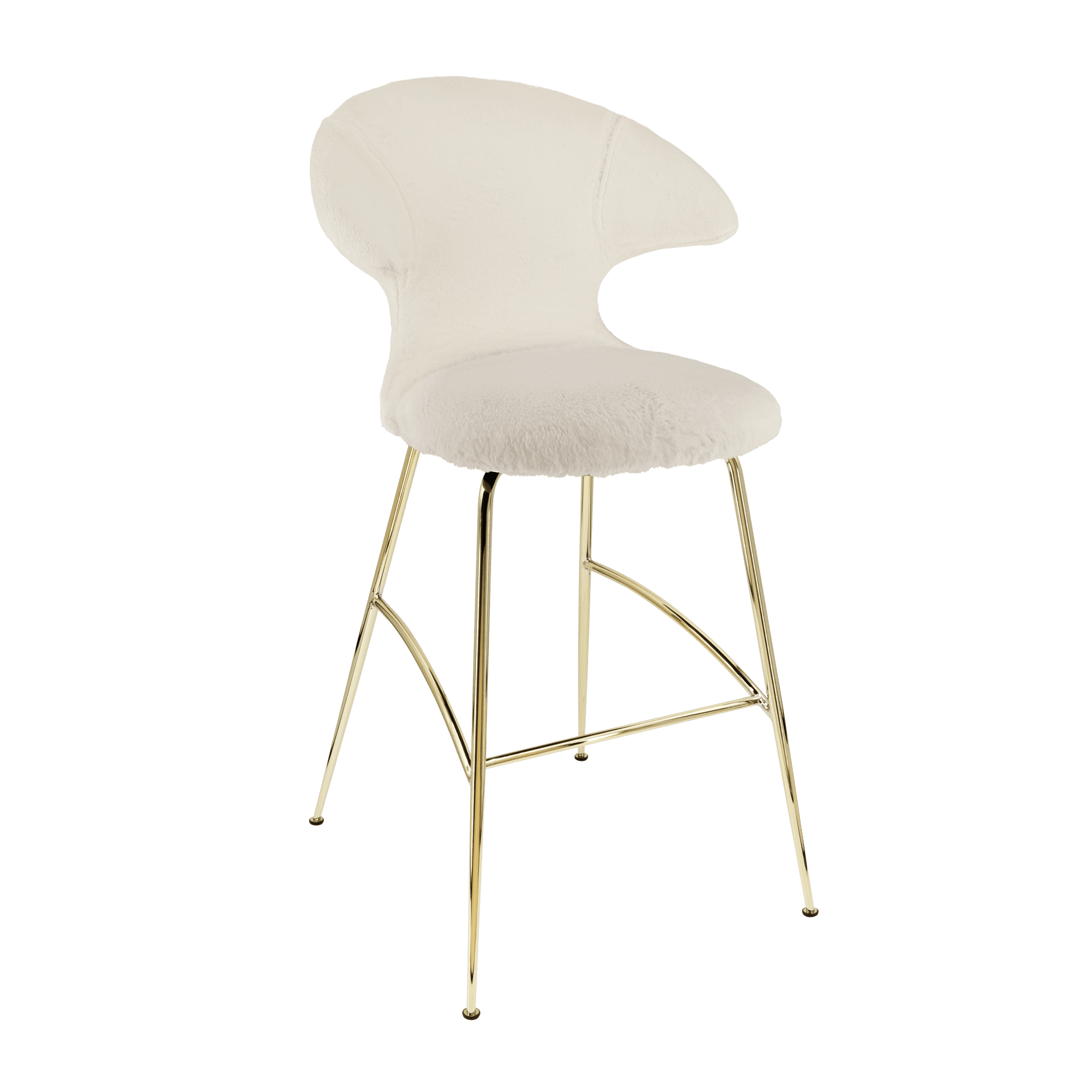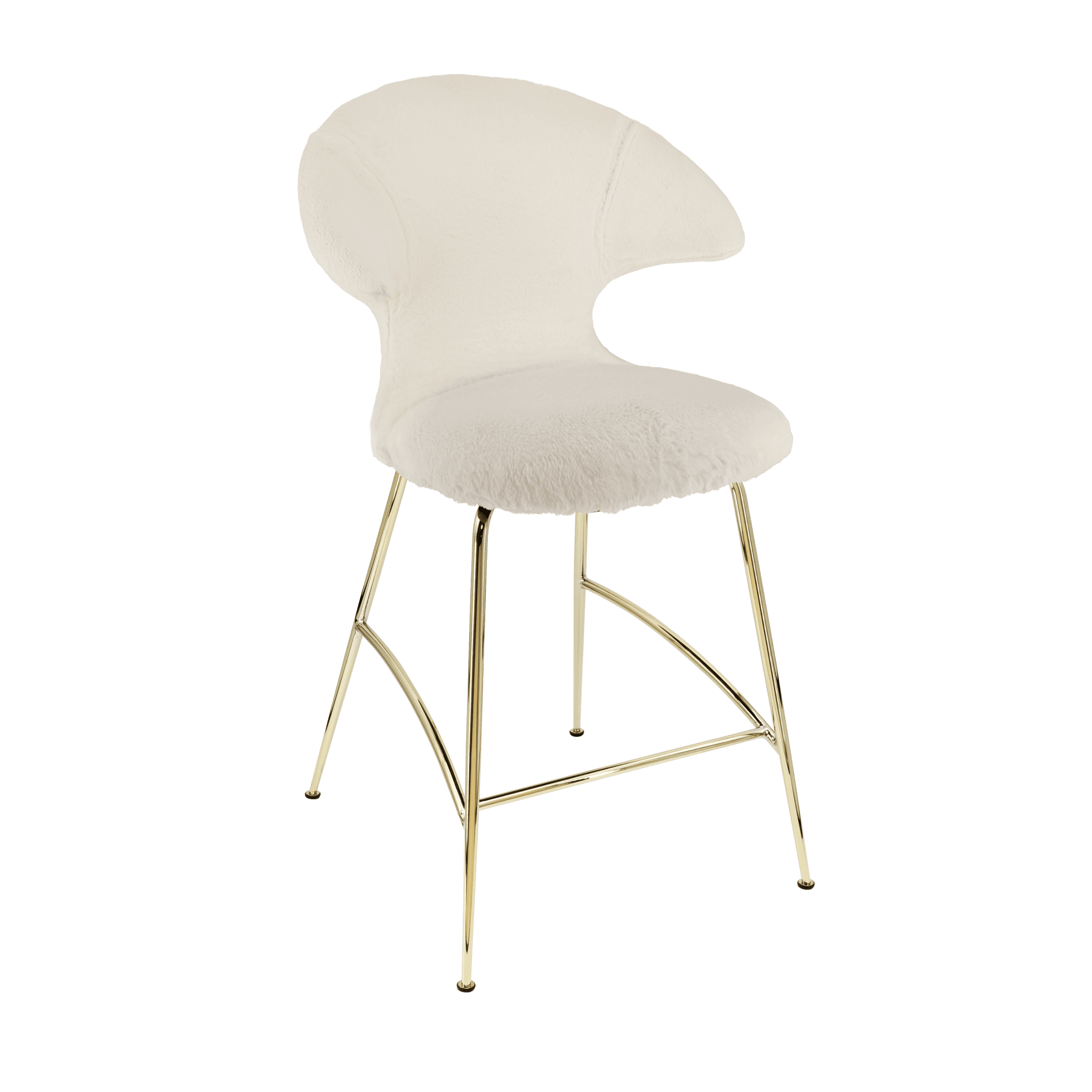 Krzesło barowe TIME FLIES kremowy plusz ze złotą podstawą UMAGE    Eye on Design