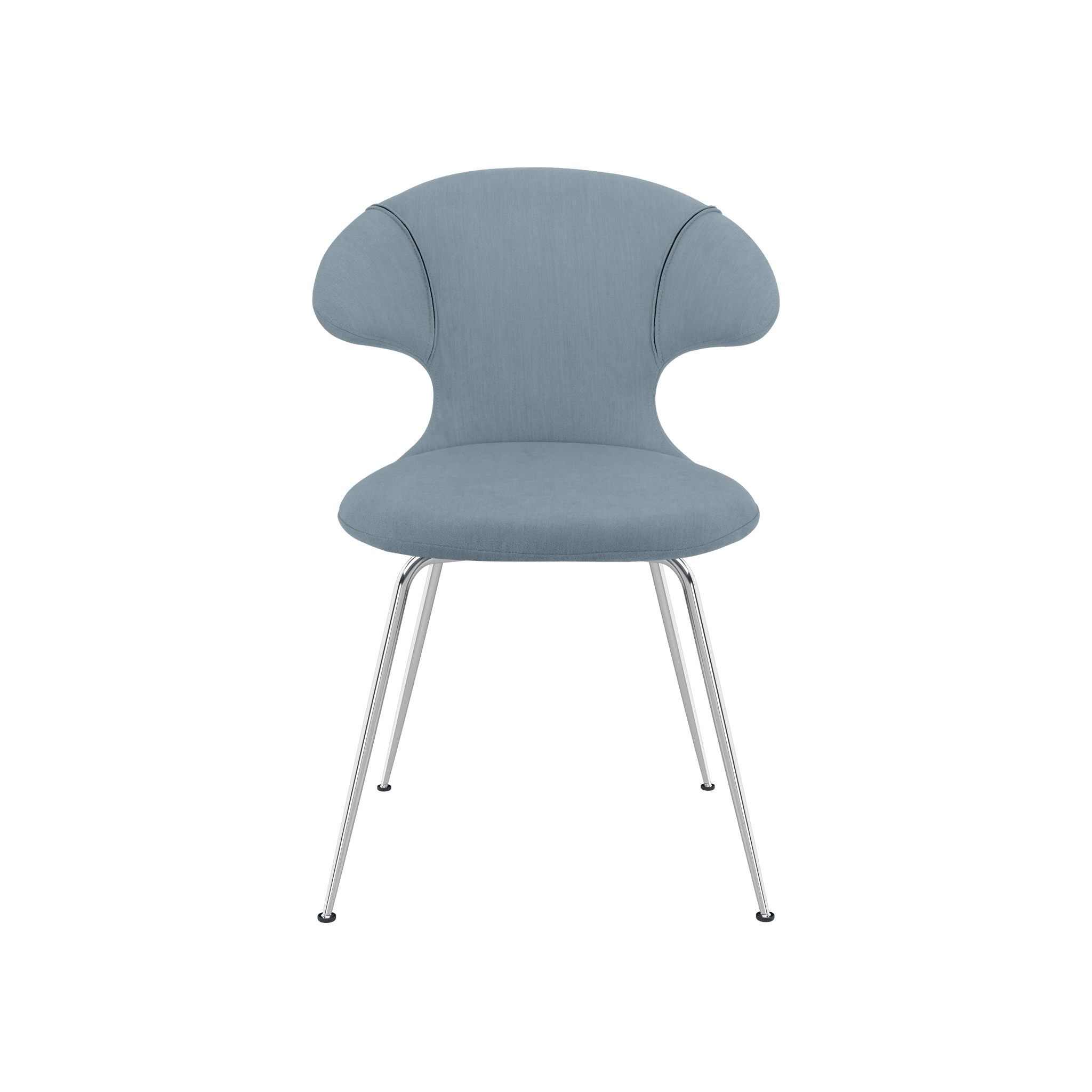 Time Flyies Blue Stuhl mit einer silbernen Basis