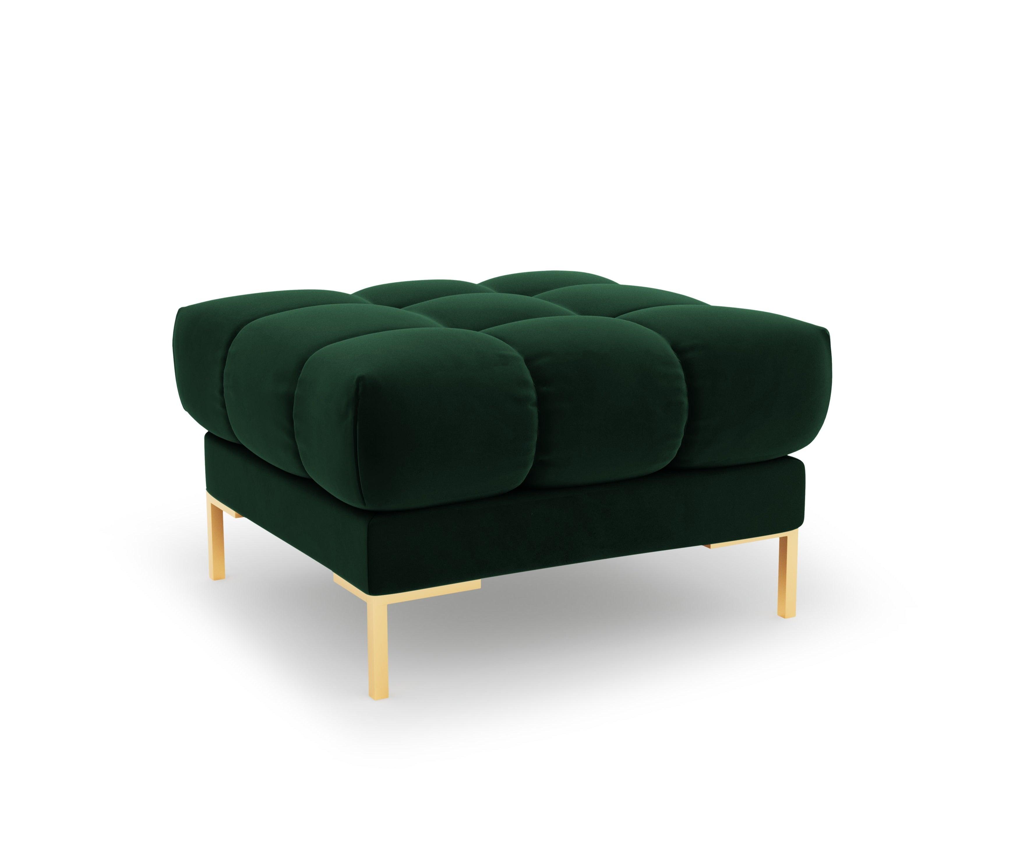 Velvet Pouf Logs Bottle Green Green mit einer goldenen Basis