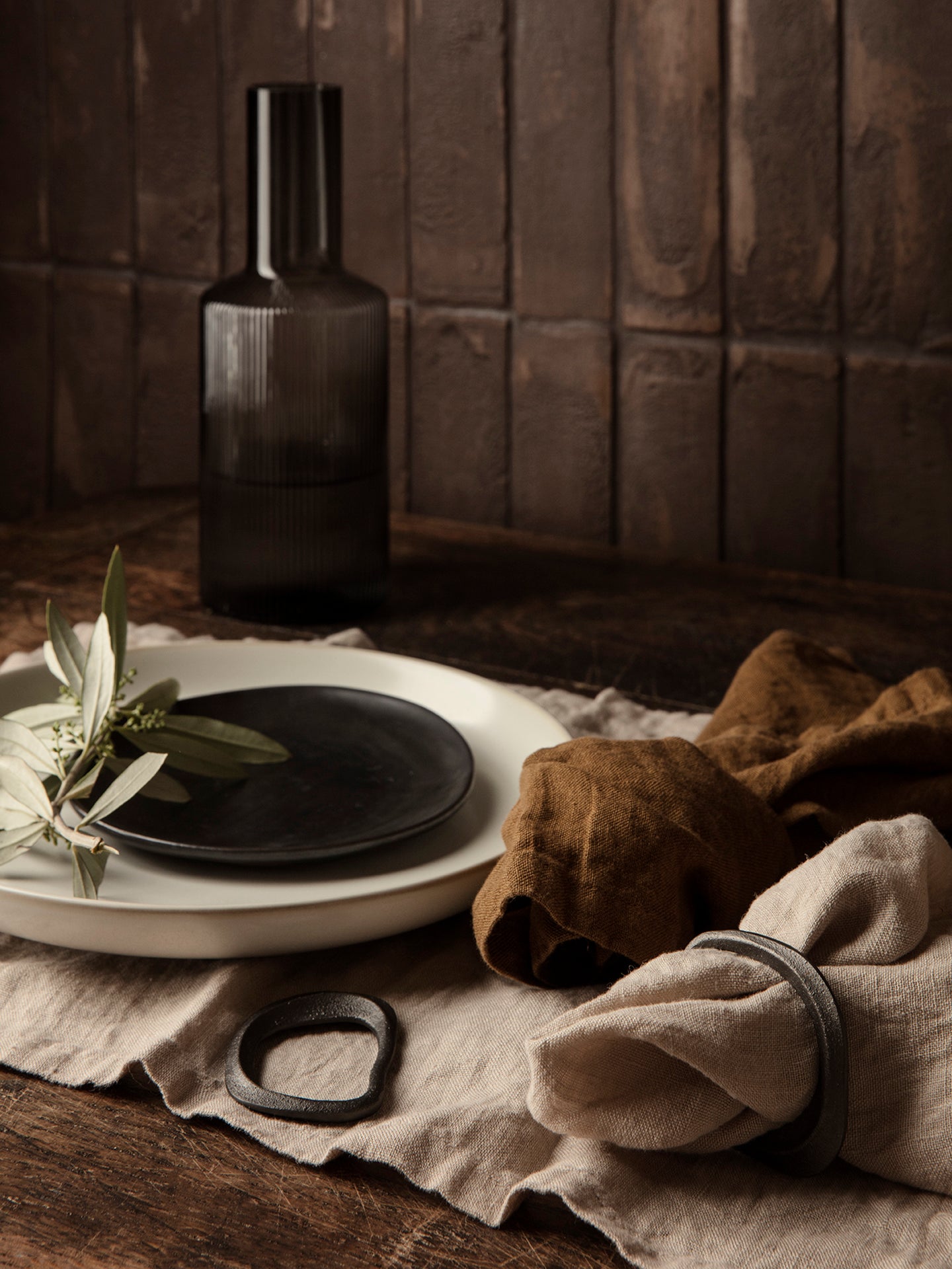 Zestaw pierścieni do serwetek FLOW czarny mosiądz