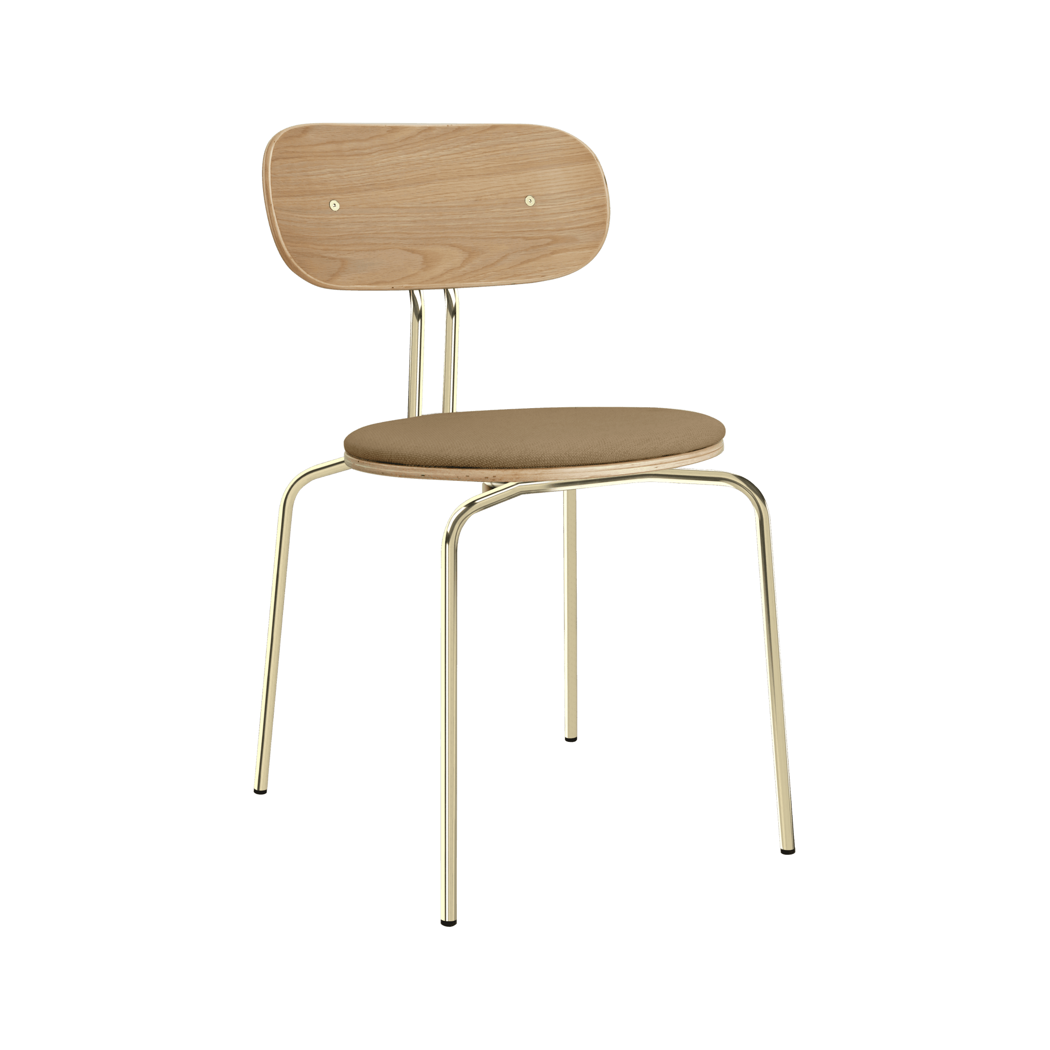 Chair Curious is elegant, light and minimalist furniture, made of oak veneer. It is available with brass or black legs, and the optional seat cushion provides additional comfort. You can choose a pillow from 17 colors of Horizons fabric, made 100% recycled, as well as in a brown or white shade of Teddy Bear fabric.
