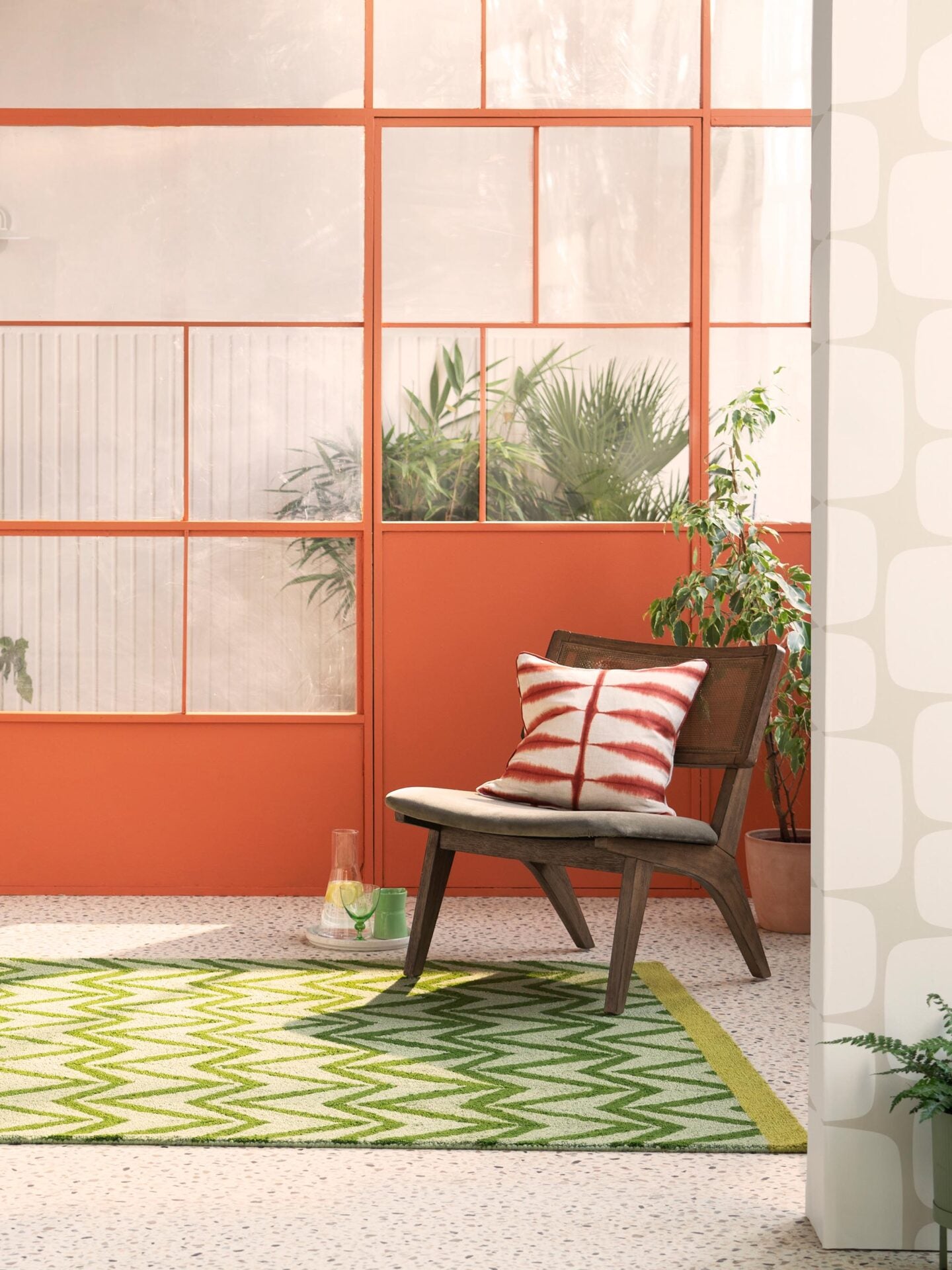 Dywan Dhurrie to stylowe i praktyczne rozwiązanie, które doskonale sprawdzi się zarówno w domu, jak i na zewnątrz. Ten dywan zewnętrzno-wewnętrzny wyróżnia się geometrycznym wzorem i nowoczesnym charakterem, który ożywi każdą przestrzeń. Idealny jako dywan na taras, balkon lub werandę, tworzy przytulną atmosferę i wprowadza do otoczenia elegancki, harmonijny akcent. Ręcznie tuftowana struktura i miękkie runo sprawiają, że dywan do ogrodu łączy w sobie komfort, trwałość i estetykę, stanowiąc funkcjonalną dekorację w stylu nowoczesnym.
