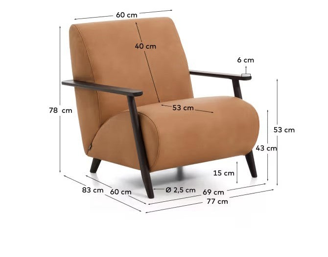 MEGHAN Armchair brown leather with black base