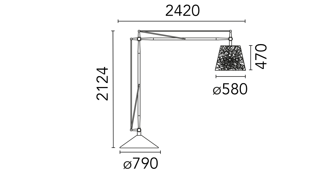 This impressively sized lamp is perfect for gardens, terraces, and public spaces. No one can remain indifferent to such an avant-garde addition. Its solid construction from high-quality materials ensures long-lasting use. The lamp is part of the FLOS collection designed for outdoor use.