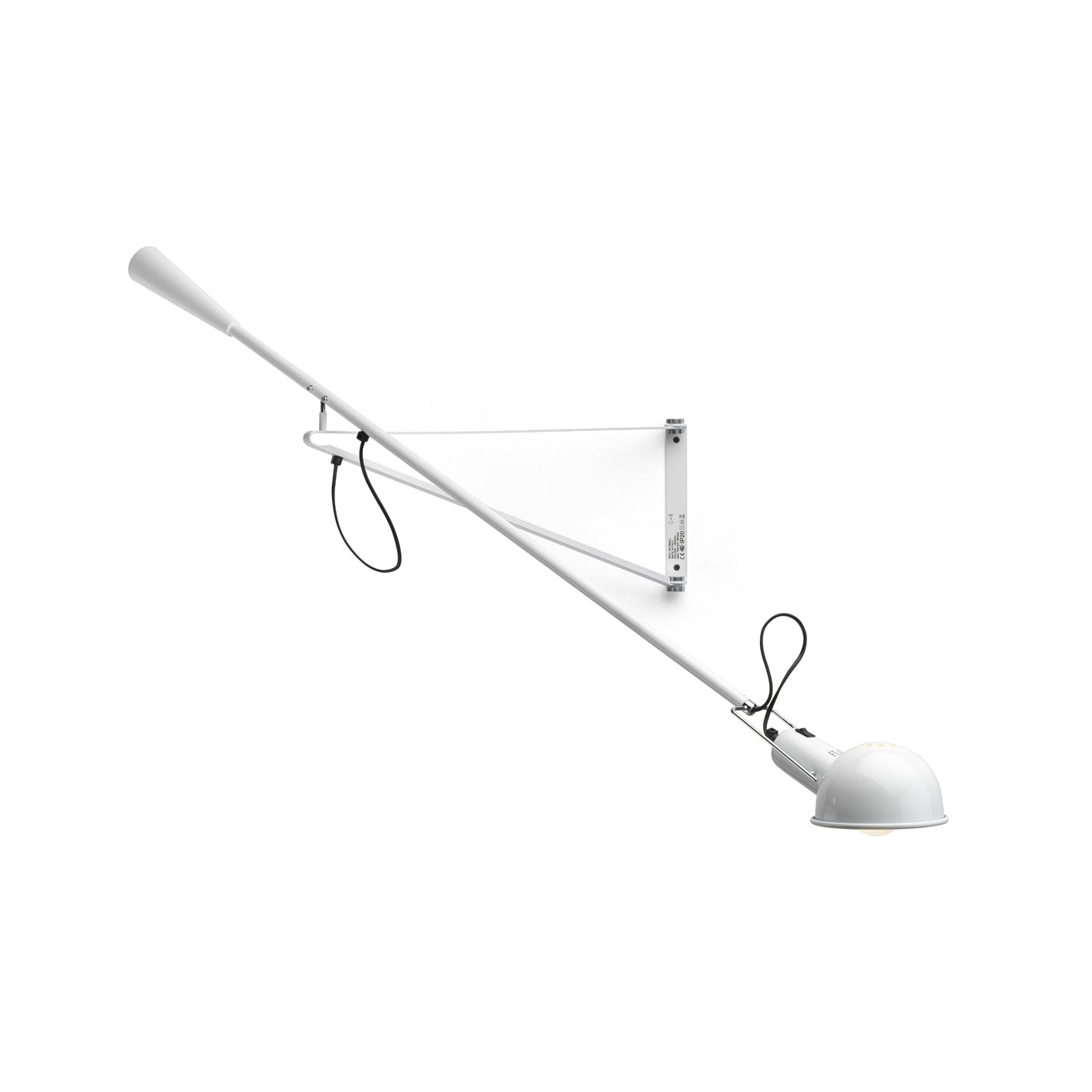 Wall lamp 265 is an iconic design that combines functionality with a striking form, allowing for precise direction of light where it is most needed. Its distinctive arm made of painted steel can be freely rotated, adjusting the reach and angle of light to the changing needs of the space.